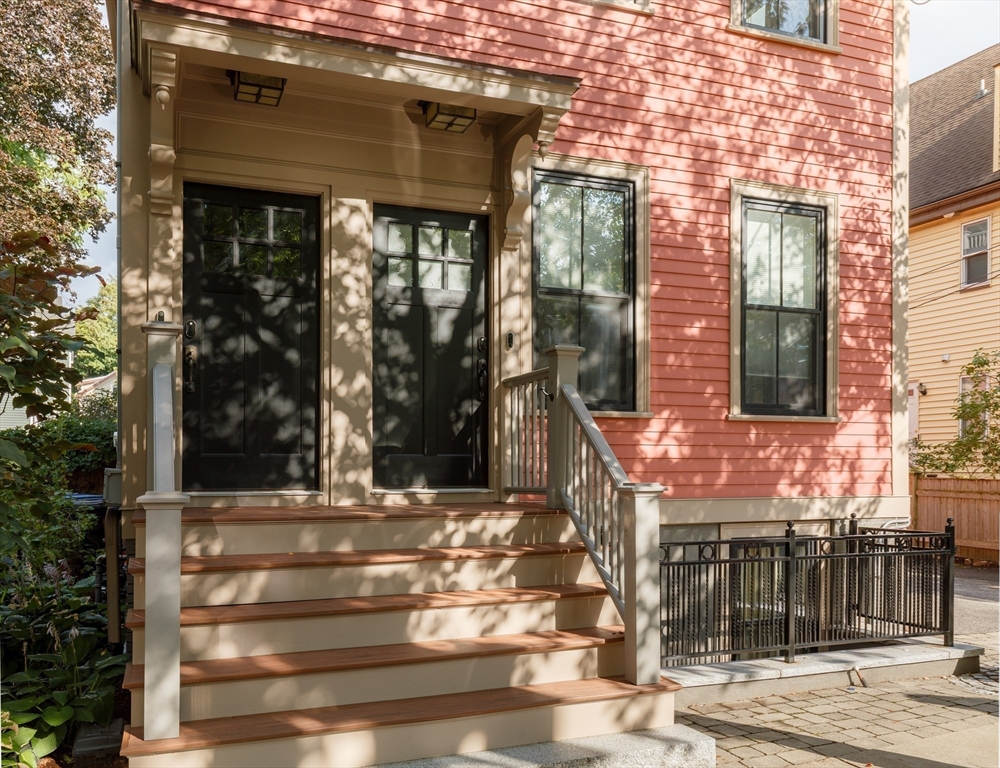 There’s something quietly striking about this award winning home—set on a tree-lined street, it blends modern comfort with a thoughtful layout across two levels. Recently renovated, it offers an open-concept main level, a private patio, and one-car parking with an EV charger on a heated driveway. A chef’s kitchen with two-tone cabinetry, a waterfall island with seating for 5, and stainless appliances anchor the living and dining areas, which extend seamlessly outdoors to a private patio finished with pavers and framed by shrubbery and trees. The serene primary suite is situated at the rear of the home and features a walk-in closet and spa-like bath with a double vanity and dual shower heads. A second bedroom overlooking Norfolk street connects to a full bath, while the lower-level ensuite bedroom offers flexibility for guests or a quiet workspace. Complete with hardwood floors, in-unit laundry, and proximity to Inman and Central Squares, it’s a polished blend of convenience and retreat