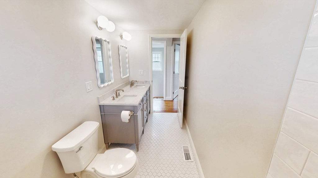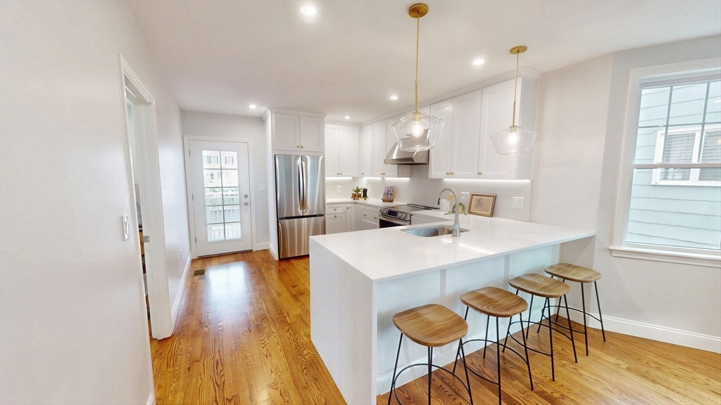 ***OPEN HOUSE SUNDAY 12/7 - 12-1 PM*** Perched on the second and third floors, 10 Lewis Street Unit 2 is a sun-drenched fully gut-renovated 4-bedroom, 2.5-bath duplex that checks every box. Taken down to the studs and completely rebuilt, this home blends elevated design with brand-new construction. Enjoy the open-concept living space with fireplace and a gourmet kitchen featuring a waterfall quartz peninsula and full stone backsplash. The main level flows out to an expansive 250 square foot rear deck, one of two private outdoor spaces—including a front-facing balcony perfect for morning coffee. The primary suite boasts a double vanity, oversized walk-in shower, and refined finishes. With high ceilings, hardwood floors, and abundant natural light throughout, this home offers a modern yet timeless feel. Ideally located steps from Hickey Park and Gillis Field, and just minutes to Medford Square. Note: Staged photos are from Unit 1 – Unit 2 shares a similar main level layout.