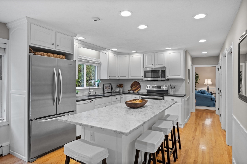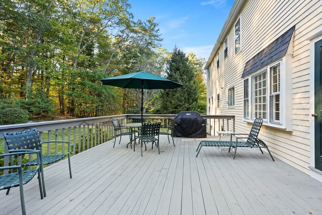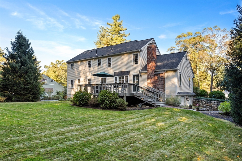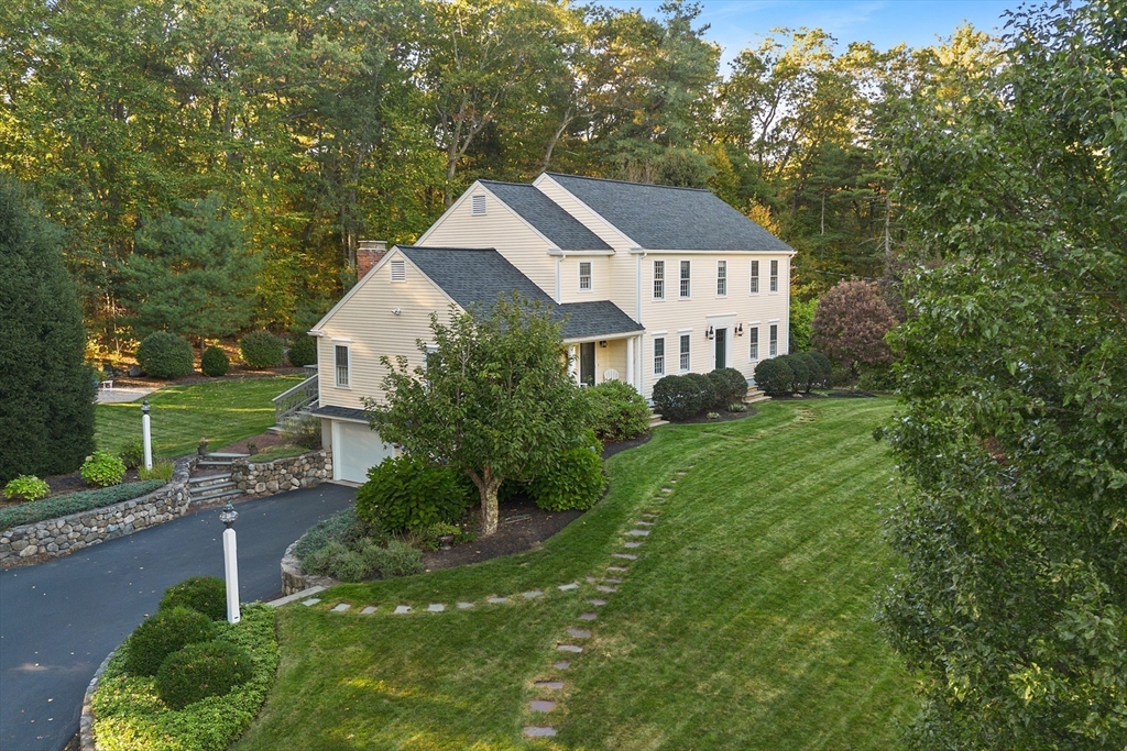 Impeccably maintained and move-in ready, this classic Colonial in sought-after Patriots Hill radiates pride of ownership inside and out. Set on a beautifully landscaped, lot abutting town land, it offers exceptional privacy and outdoor enjoyment with a spacious deck and peaceful views. Inside, thoughtful updates blend comfort and style—a remodeled kitchen w/ granite countertops, center island, hardwood flooring and sunny eating area overlooking the backyard. Relax by the fireplace in the inviting family room or entertain in the bright front-to-back living room and formal dining with wainscoting. The primary suite offers a walk-in closet and updated bath, while three additional bedrooms provide space for everyone. Updated baths w/ quality finishes, first-floor laundry, a versatile bonus room, walk-in attic storage, and an oversized two-car garage complete this well-loved home close to Acton Center, AB schools, shops, and major routes. A home full of care & charm, just waiting for you!