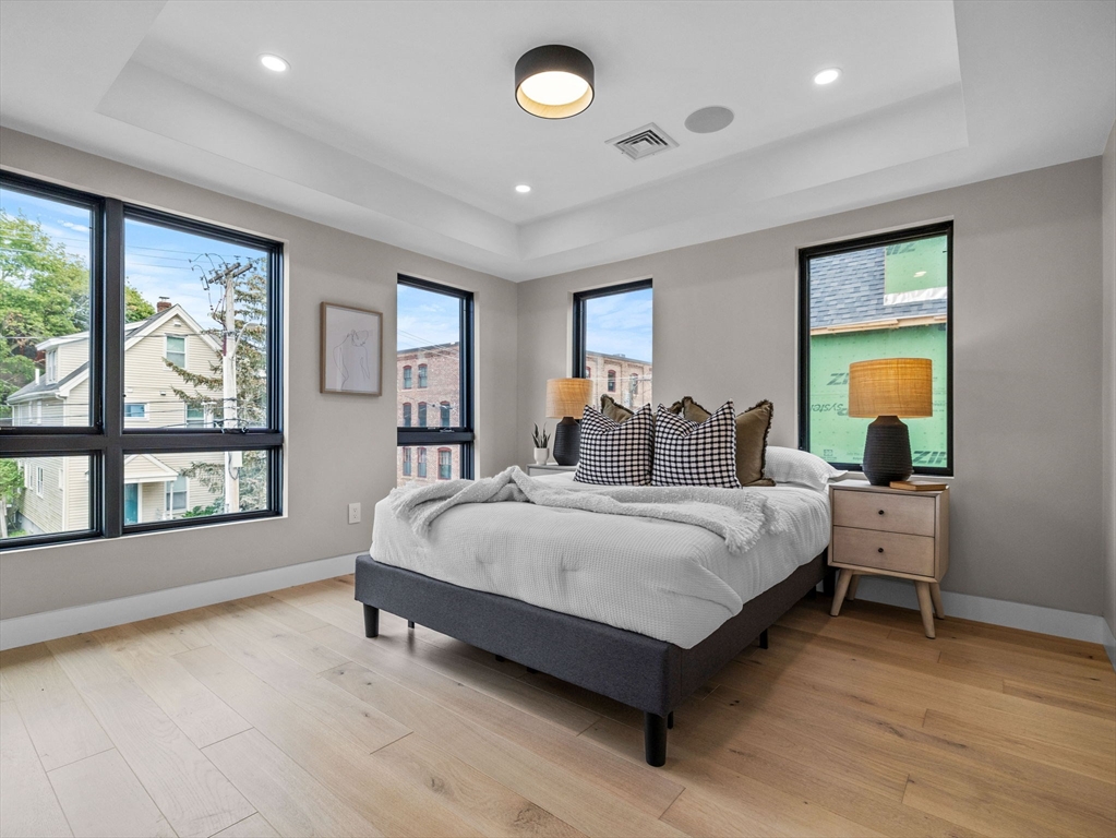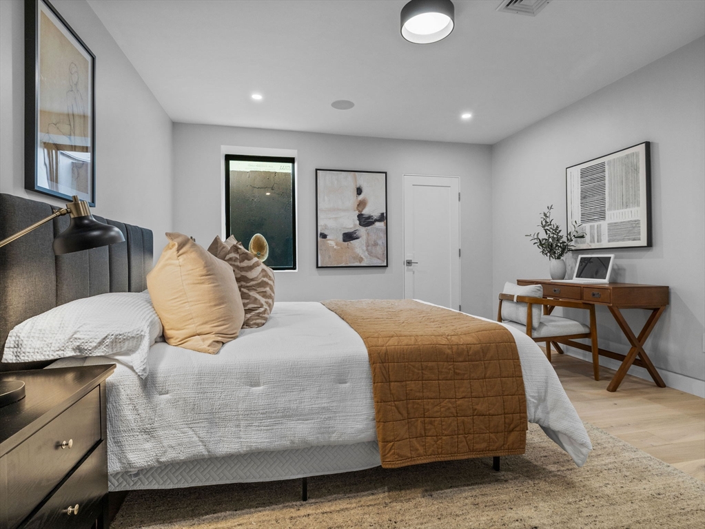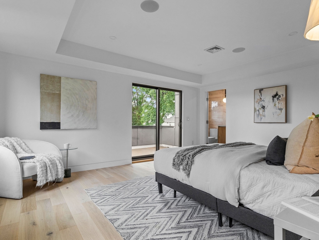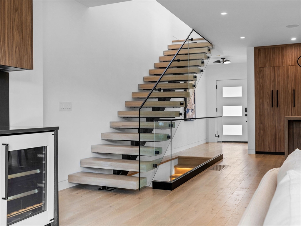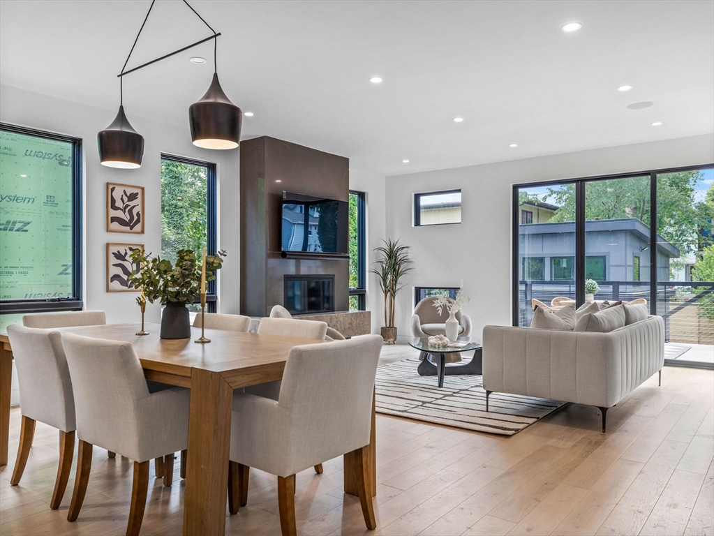 Discover refined living in this exceptional LEED certified single family residence; your alternative to condo living! This all electric smart home showcases a thoughtfully crafted open floor plan, featuring four spacious bedrooms and four and half bathrooms; including three luxurious ensuite retreats that offer privacy and comfort. The finished lower level provides a flexible space well-suited for family gatherings, media entertainment, and a dedicated home office. The main living area transitions seamlessly to a sunlit deck, overlooking a professionally landscaped yard that enhances the home’s indoor and outdoor flow. Smart home integration includes automated lighting, climate control, tv's and built-in audio systems, all accessible via tablet or mobile app. Situated in the heart of North Cambridge, with close proximity to the Minuteman Bikeway and vibrant Davis Square, this residence offers a rare combination of environmental responsibility, modern convenience, and timeless elegance