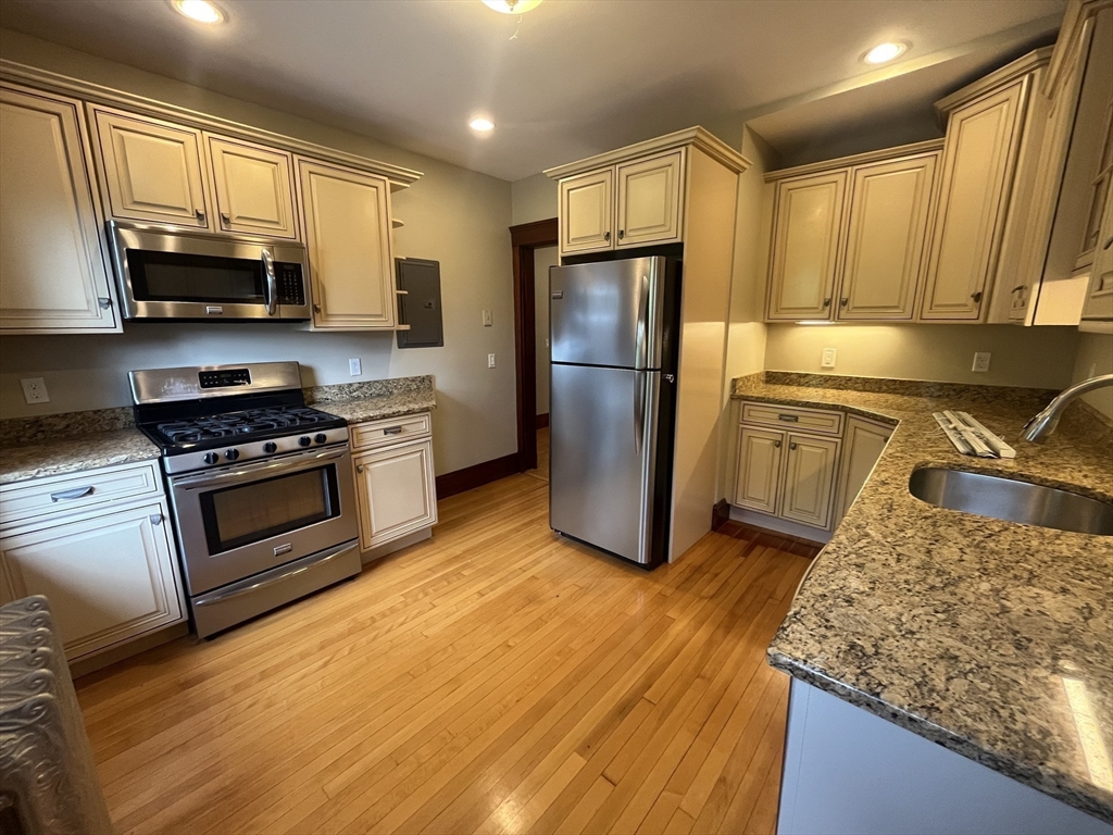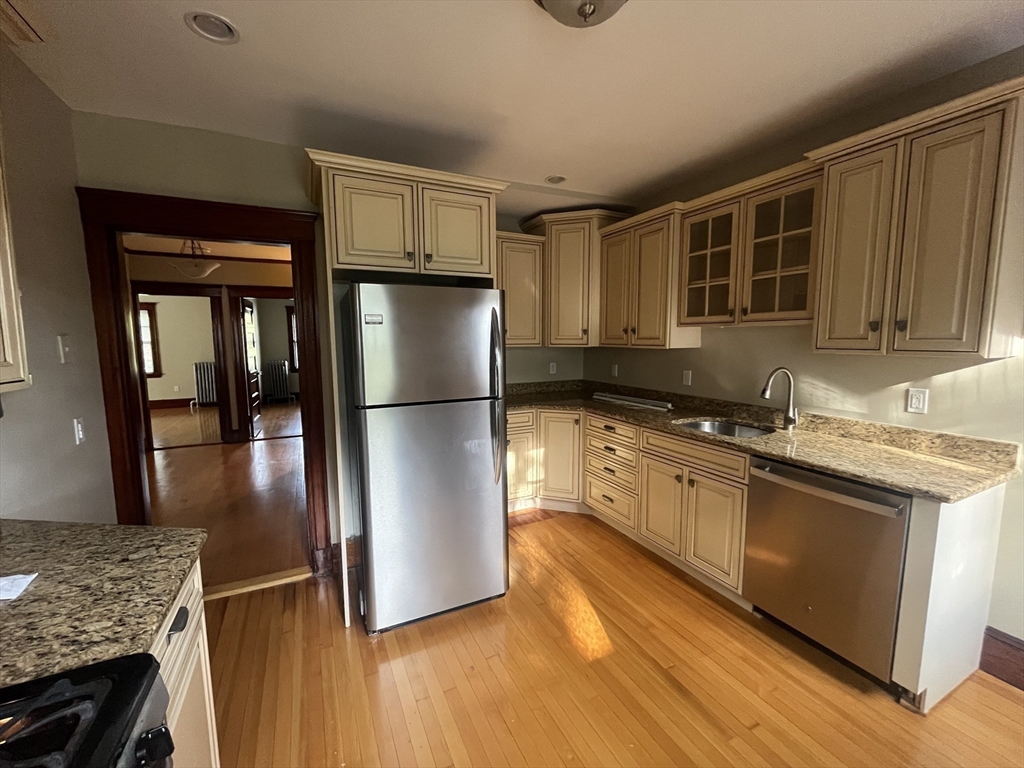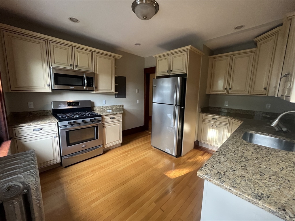Beautifully updated 3-bedroom, 1-bath apartment with additional office/workout room located in a meticulously maintained turn-of-the-century building. This spacious unit features a large living room, gorgeous hardwood floors throughout, and stunning original woodwork that adds timeless character. The oversized kitchen is sure to impress with stainless steel appliances, granite countertops, and generous cabinet space. Enjoy the convenience of your own washer and dryer in the unit along with extra basement storage. Two off-street tandem parking spaces are included, one of which is in a garage. Gas heat. Prime commuter location with the commuter rail nearby and a bus stop right outside your door. Just feet from some of Melrose’s finest restaurants. First month’s rent due at signing. No pets. No smoking. Excellent credit, income, and references required.