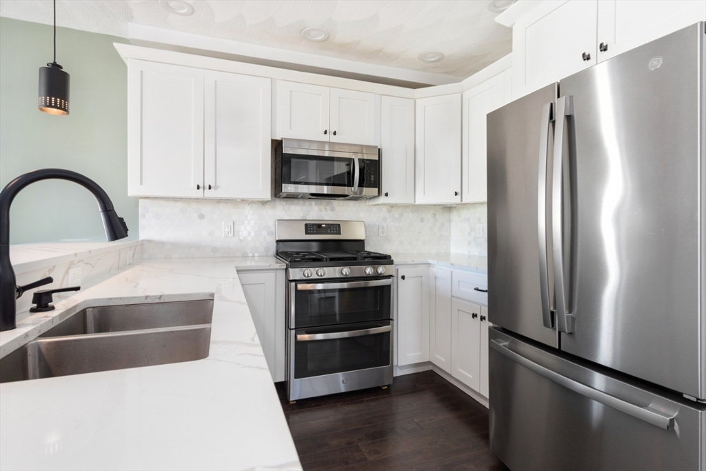 Welcome to this impressive 2 family home that lives like 2 singles. Each unit has its own entrance, a spacious open floor plan, in unit laundry and separate utilities with the exception of the water service. Each unit has 2 full updated baths. Both stunning kitchens feature quartz counters, tile back splash and trendy cabinetry. The stoves offer gas cooking and double ovens, just in time for Thanksgiving! The first floor accesses a fabulous covered composite deck. Other noteable features are a welcoming front porch, 2 tankless instant hot Navien hot water systems, a new roof and siding in the last 3 years and a brand new 2 car garage. The generous landscaped yard is fully fenced in. The exterior decking, most of the railings and all of the fencing are vinyl wrapped, requiring minimal maintenance. Central A/C, lots of parking and get this: a convenient dog run complete this great property. Perfect for extended family, as an investment, or a future condo conversion. Offers due 10/21 @2PM