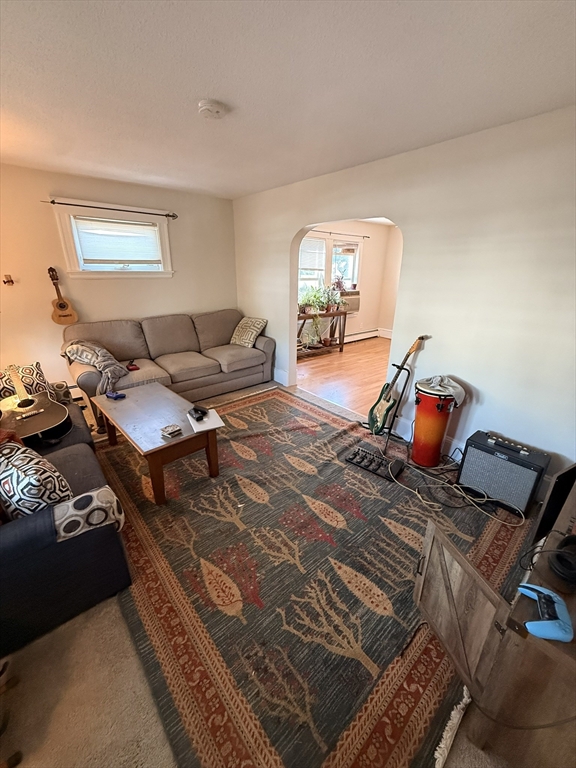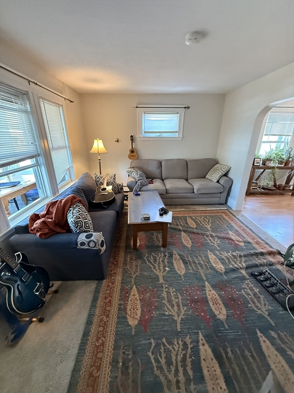 Spacious and sun-filled 3rd floor 2-bedroom 1 bathroom apartment in a well-maintained Brighton three-family. Enter through a large versatile entryway with storage closet, leading to a bright front sunroom overlooking Union St. Unit features a generous living room, separate dining room, and fully equipped kitchen with dishwasher, stove, refrigerator, microwave, and pantry with extra cabinetry and countertops. Primary bedroom offers two double-door closets, plus multiple common storage closets throughout. In-unit washer/dryer included. Enjoy shared use of a deck that overlooks a beautifully landscaped backyard. Walking distance to Washington St Green Line (B), local restaurants, cafés, and shops.