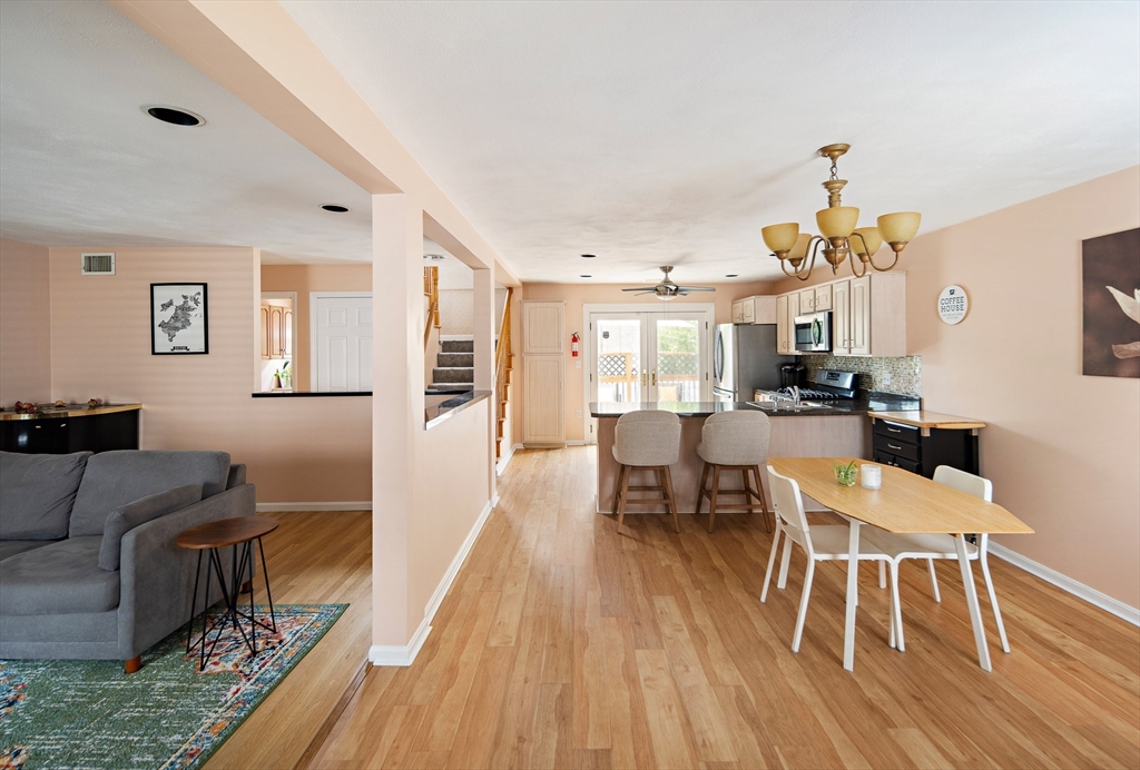 Experience the comfort of single-family living with the ease of condo ownership in this updated 3 bed, 2.5 bath townhome in East Boston’s sought-after Harborview neighborhood. The sun-filled first floor features an open layout ideal for entertaining, with a spacious living room, dining area, and modern kitchen with peninsula seating and access to a private rear deck. Upstairs, the expanded primary suite is conveniently located near the laundry room. The fully renovated 2024 lower level offers a large bedroom, stylish full bath, and inviting family room—perfect for guests, in-laws, or a teen suite. Additional upgrades include a new roof, A/C condenser (2023), hot water heater (2024), and stairwell carpeting. Enjoy one deeded parking space, ample storage, and proximity to beaches, restaurants, gyms, the Blue Line, and Logan Airport—truly a rare find in an unbeatable location. Association also includes 2 on site visitor parking perfect for guests.