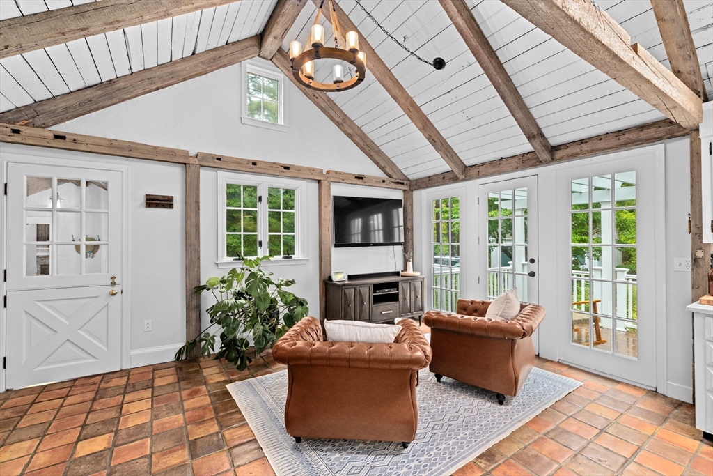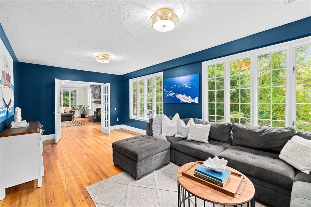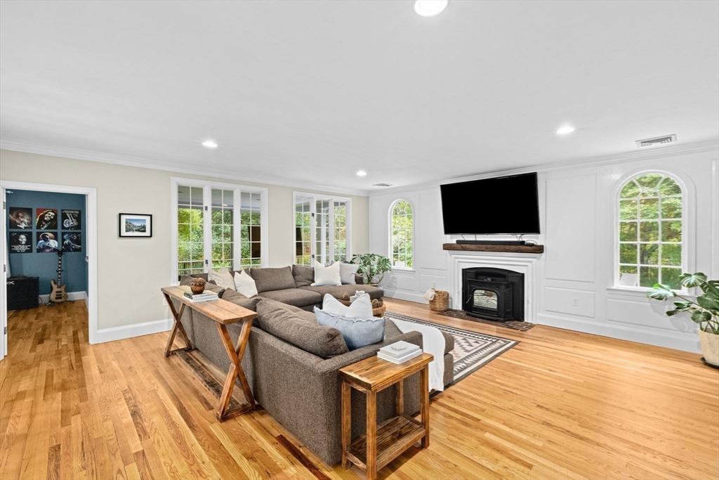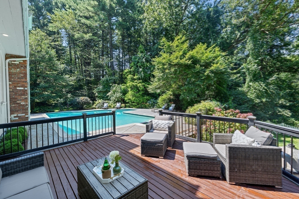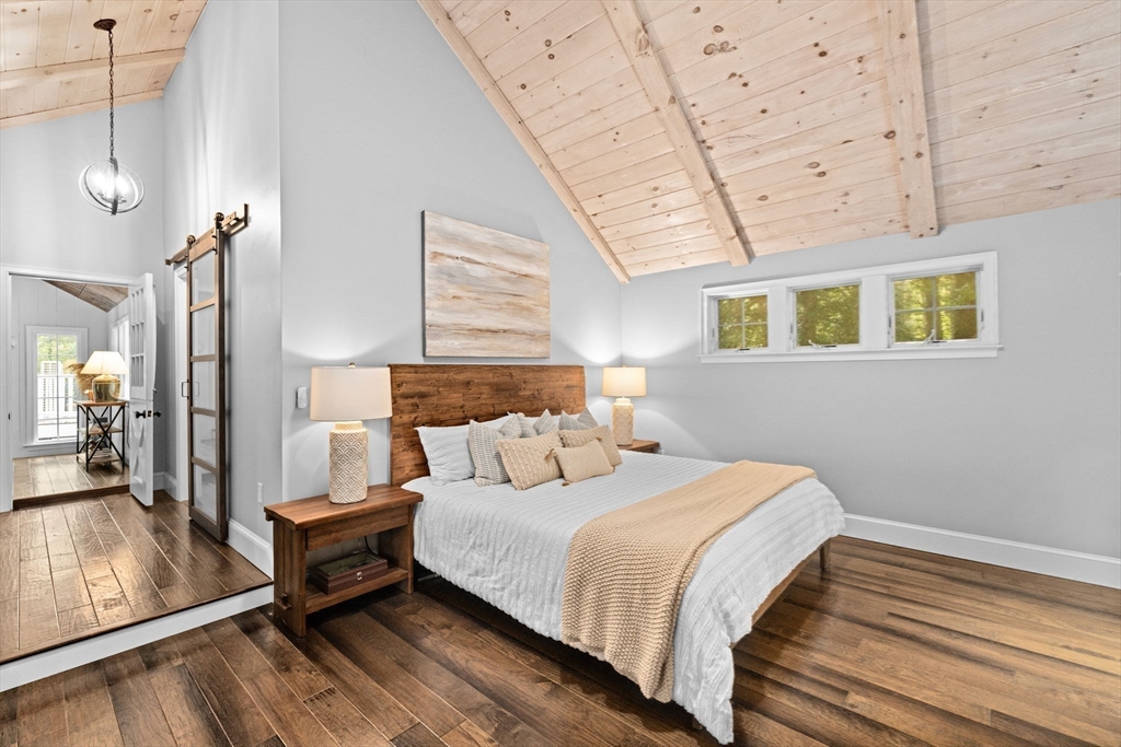 Built to suit an extraordinary lifestyle, offering your own private oasis, this magnificent turn-key home offers a rare opportunity to have it ALL! Tucked away on a quiet, newly paved retreat lot w/1.37 acres of privacy throughout the park-like grounds, featuring an impressive heated, salt water, Gunite pool abutting the covered patio & spacious decking. Instantly greeted w/ character & charm upon entering the mudroom, the 1st floor primary ensuite features a spa-like bath, cathedral ceilings, stone fireplace, & walk-in closet, possible in-law. Exuding timeless allure, the stunning chef's kitchen opens to the front porch & back deck. The dining room, living room, great room, office, & full bath complete the expansive 1st floor. Fall in love w/the stunning wide-pine floors upstairs, w/ensuite primary & WIC, 2 bedrooms, another full bath, & WIC/laundry room. Finished basement w/full bath! Paid off solar w/electric heat & many updates incl windows & roof. Walk to N.River Launch & trails!