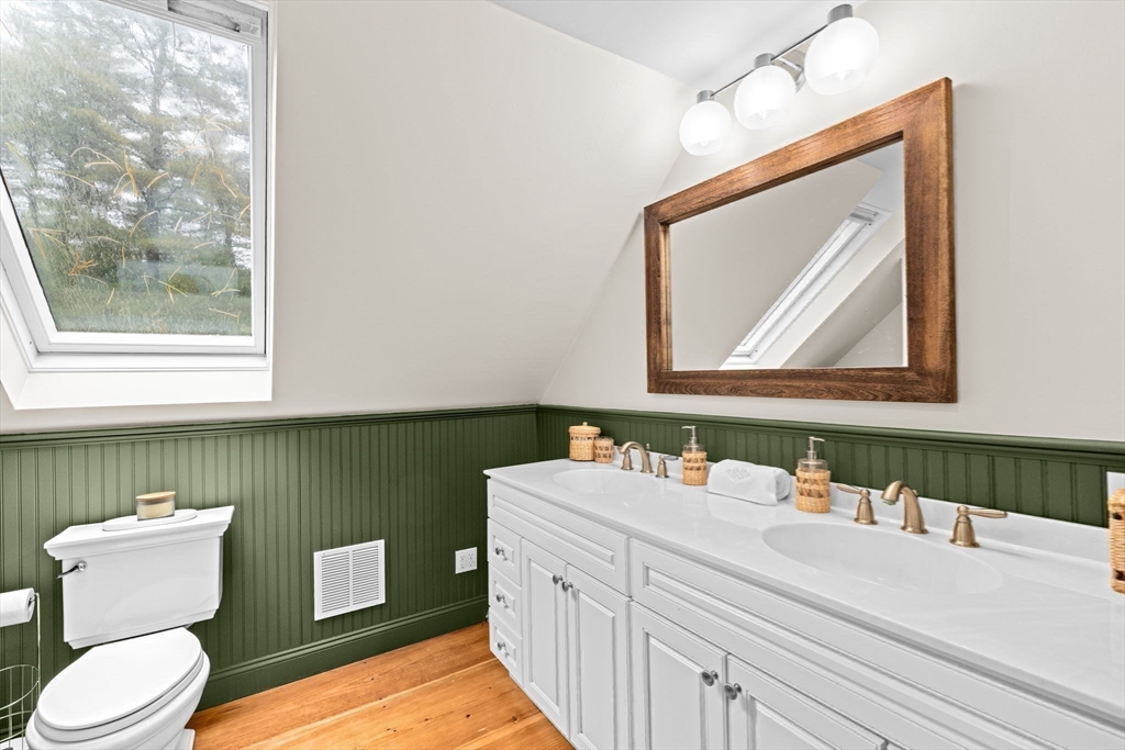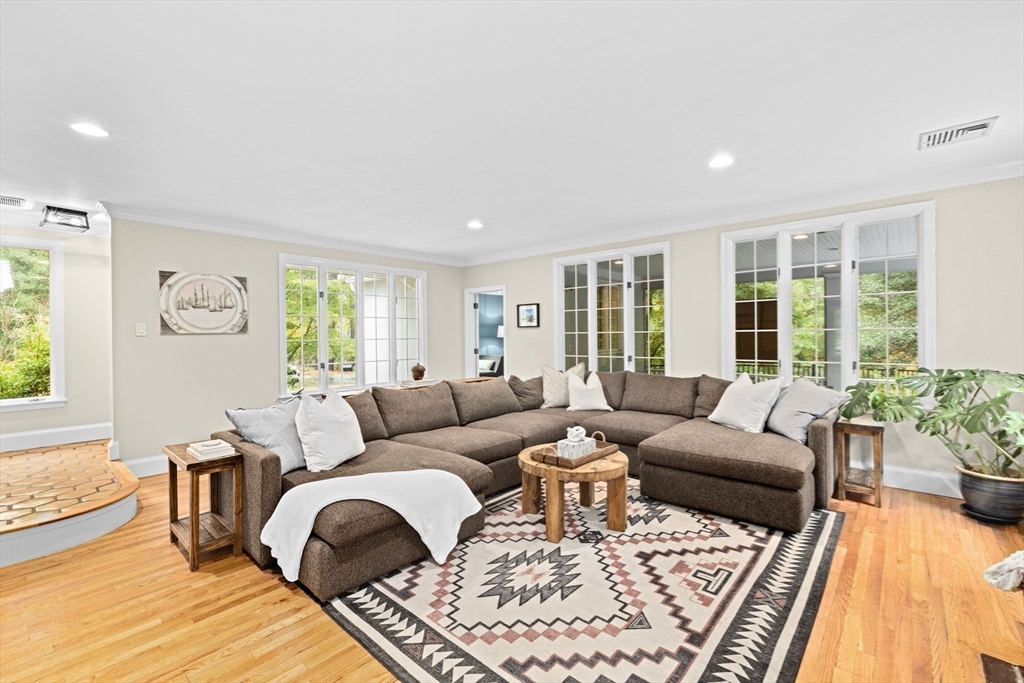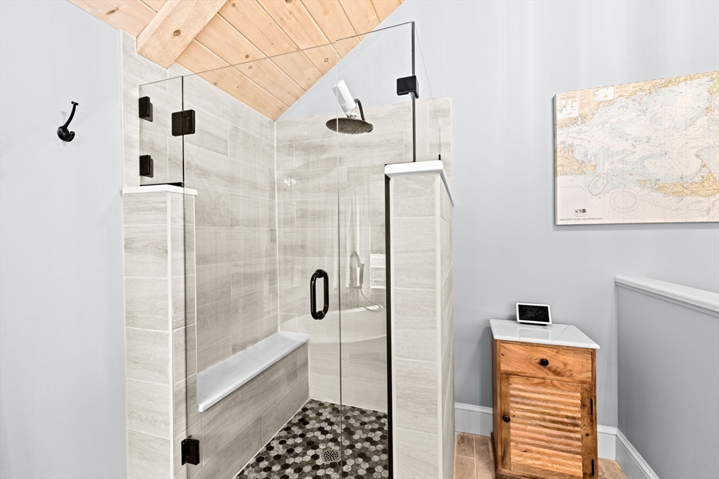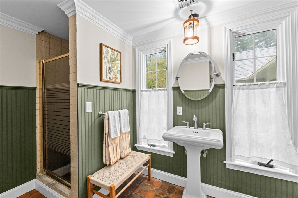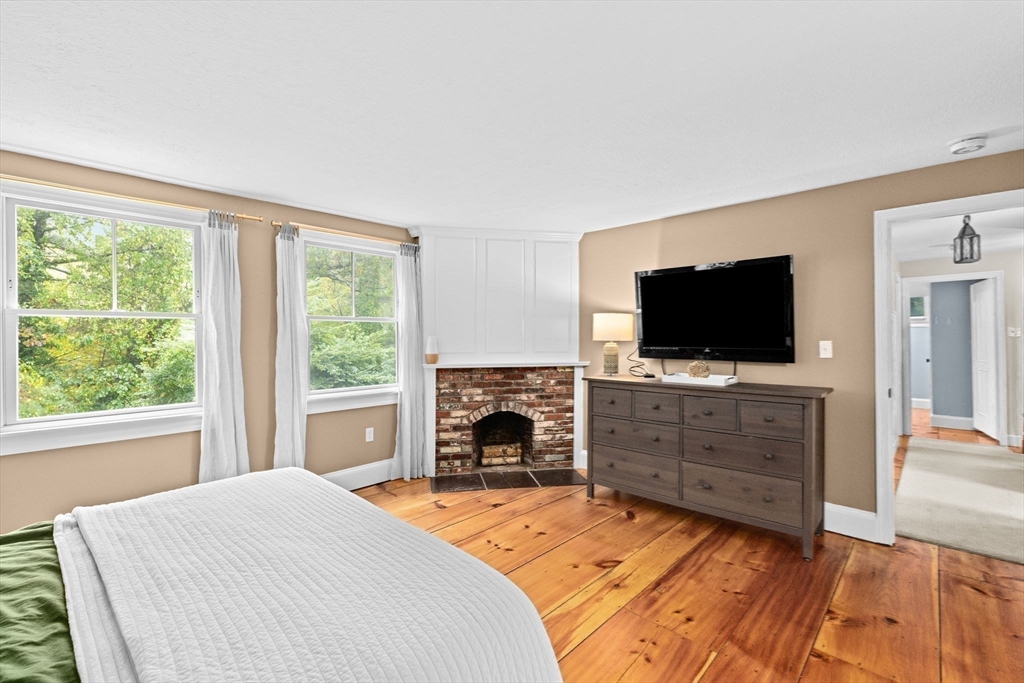 Built to suit an extraordinary lifestyle, offering your own private oasis, this magnificent turn-key home offers a rare opportunity to have it ALL! Tucked away on a quiet, newly paved retreat lot w/1.37 acres of privacy throughout the park-like grounds, featuring an impressive heated, salt water, Gunite pool abutting the covered patio & spacious decking. Instantly greeted w/ character & charm upon entering the mudroom, the 1st floor primary ensuite features a spa-like bath, cathedral ceilings, stone fireplace, & walk-in closet, possible in-law. Exuding timeless allure, the stunning chef's kitchen opens to the front porch & back deck. The dining room, living room, great room, office, & full bath complete the expansive 1st floor. Fall in love w/the stunning wide-pine floors upstairs, w/ensuite primary & WIC, 2 bedrooms, another full bath, & WIC/laundry room. Finished basement w/full bath! Paid off solar w/electric heat & many updates incl windows & roof. Walk to N.River Launch & trails!