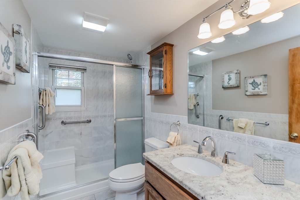 Step inside this well-maintained vinyl-sided expandable Cape featuring hardwood floors throughout. Large living room updated eat-in kitchen with granite countertops, and stainless-steel appliances. 3 ample-sized bedrooms with abundant closet space. Renovated bath with walk-in shower, tile floors, and a granite-topped vanity, all located on the same level. Additional features include central A/C and a newer high-efficiency gas heating and hot water system. Finished basement offering extra living space, a covered side porch off of the kitchen. A flat level yard fully irrigated, a detached one-car garage, and a large shed. This one is a must-see! First showings at open house Sunday October 19, 2025 12:30 to 2:00 PM