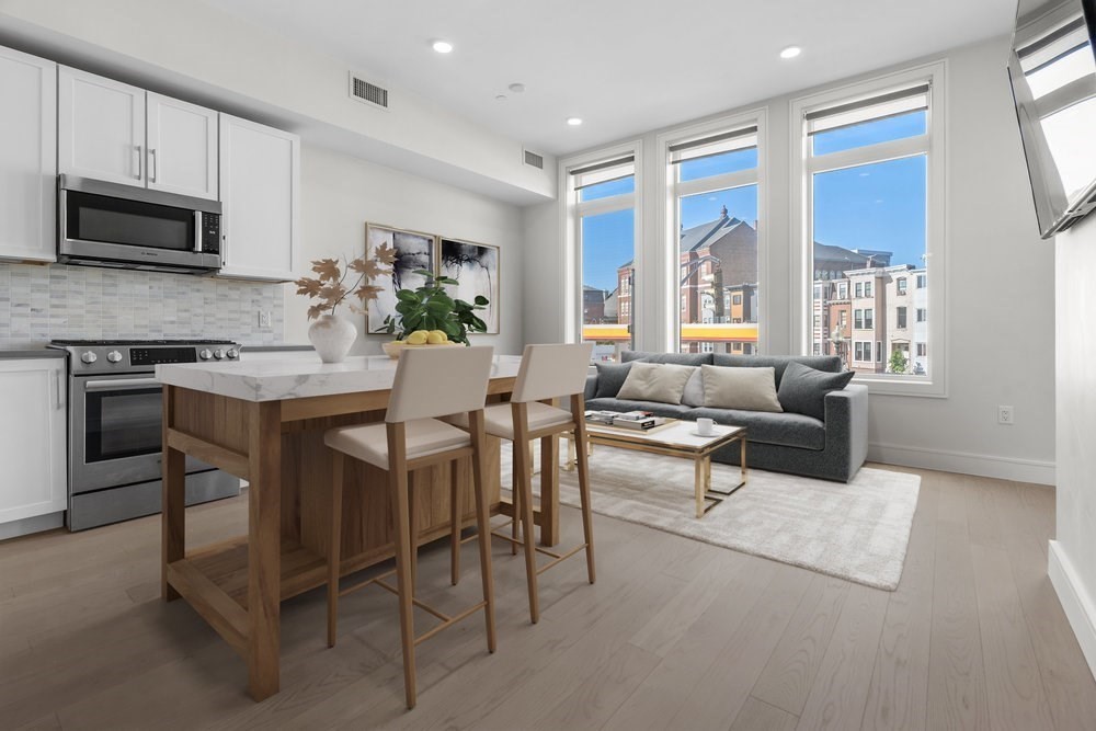Short or long term rental available NOW in East Boston! Welcome home to 65 Meridian - this one bedroom, one bathroom in an elevator building boasts high ceilings, lots of natural light and is located in the heart of Eastie. Enjoy a chef's kitchen with stainless steal appliances and plenty of storage. Your living area allows for a multitude of uses including dining, living area and home office. A spacious bathroom features large shower and convenient, yet out of the way, access to your in unit washer/dryer. The king sized bedroom features two fully outfitted closets and access to a private deck! Lease to run through March 2026 with potential option to renew!