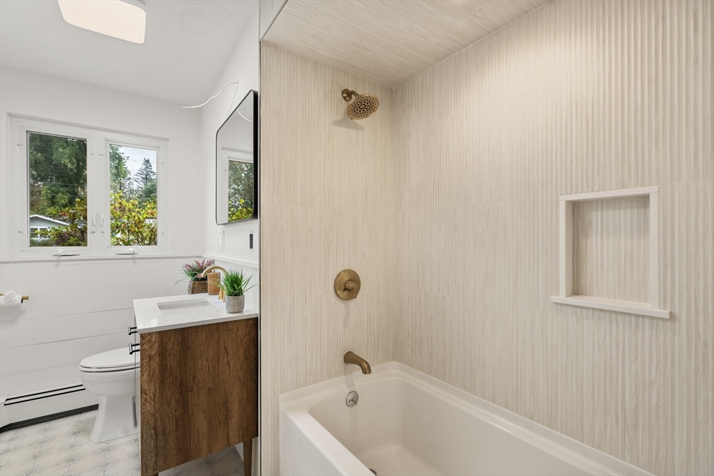 Mint! JUST updated bright and fresh North Framingham ranch! This 3 bedroom, 2 full bathroom home is the perfect blend of comfort and style. Wait until you see the new baths, flooring, paint and lighting! So many upgrades including, furnace, water heater, oil tank, central air mini splits, windows, flooring, electrical, and landscaping! The thoughtfully designed layout features an updated eat-in kitchen, stainless steel appliances, cozy living room with fireplace and slider to flat and private yard. Laundry and mudroom! A spacious primary suite with an ensuite bath, two more generous bedrooms and full bath! Enjoy outdoor living in the expansive, level backyard complete with a newer patio! Perfect for entertaining family and friends. 1 car garage. A true turn key home! Conveniently located near schools, shops, restaurants, and commuter routes. This home is a must see!