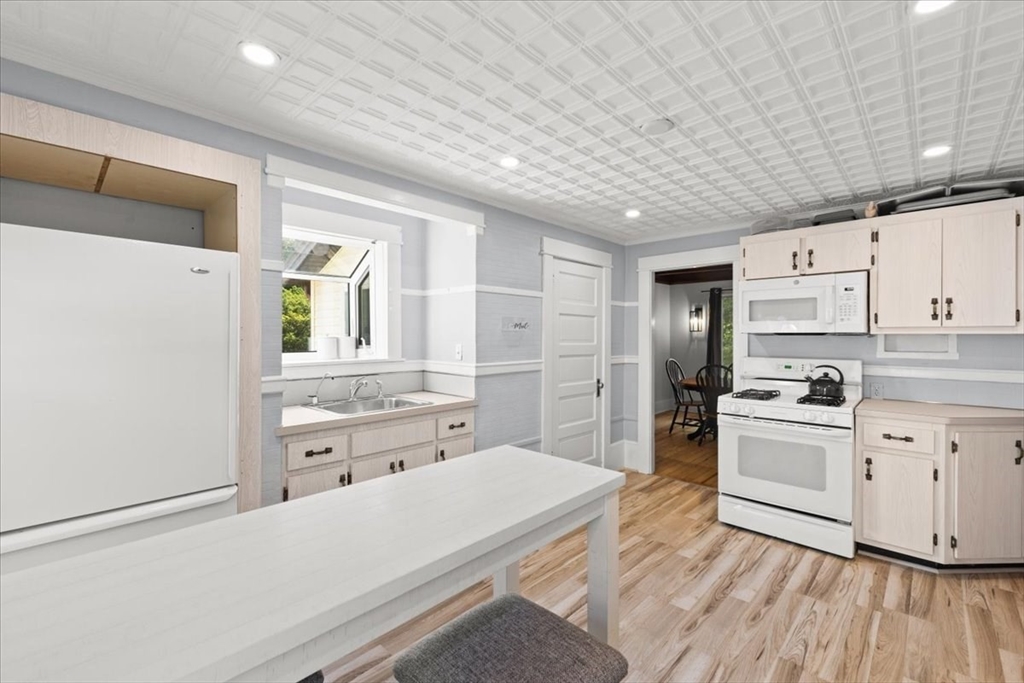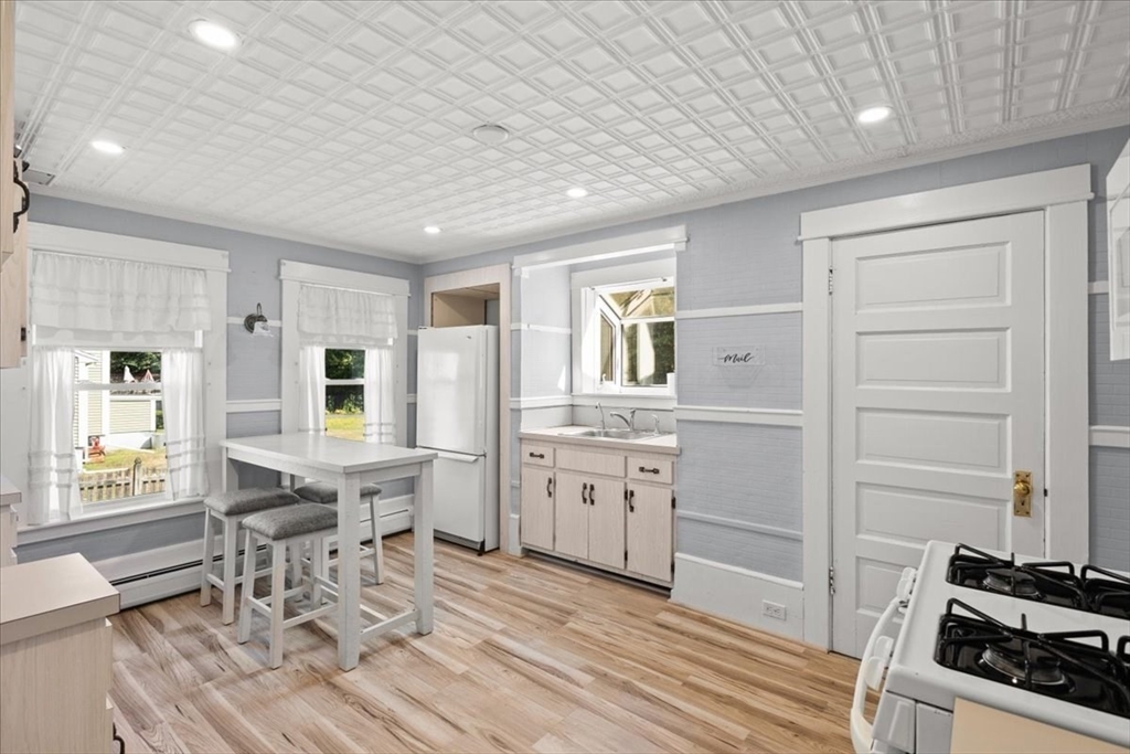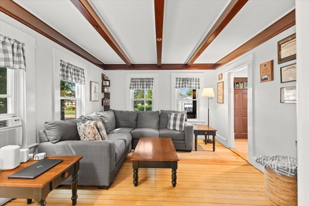 Ready to move in and experience a new chapter of your life? Welcome to 679 Plymouth St, a 3 bedroom, 1.5 bath colonial that's ready for it's new owners. The living room is a welcoming space, crowned by a beamed ceiling that adds character and warmth to the room. Imagine gathering with loved ones in this comfortable atmosphere, creating memories that will last a lifetime. The kitchen provides a delightful space to explore culinary creations, enhanced by the touch of elegance from thedecorative ceiling. Envision preparing meals in this charming kitchen, filled with the aroma of home-cooked goodness. The bathroom offers a walk in shower & 1st floor laundry. Beyond the interior, a 3 season sunroom allows for basking in the warmth of the sun. A deck provides an ideal setting for morning coffee or evening relaxation, while the partially fenced backyard offers a private area for outdoor activities. Full basement for storage and double wide driveway that can accomodate parking for 4 cars!
