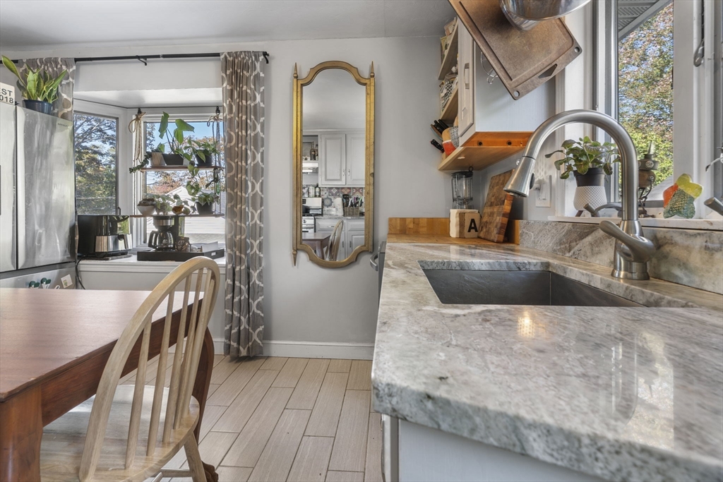 Come see this beautifully updated Cape on a quiet side street in Beverly’s desirable Ryal Side neighborhood. Renovated six years ago, this charming home features an architectural shingle roof, vinyl siding, and an updated kitchen with granite countertops and stainless steel appliances. The bathroom was fully remodeled with a new tub, tile surround, tile flooring, and vanity. Additional updates include blown-in insulation and a newer gas-fired furnace for energy efficiency. Enjoy the level, fenced-in backyard from your private back deck. A spacious driveway offers plenty of parking, and the two-car garage has been converted into a versatile space with an office, workshop and storage area, complete with a working wood stove, could be converted back to a traditional garage if desired. Conveniently located near Route 128, the commuter rail, riverfront, and beautiful Obear Park, this move-in-ready home is ready for a new owner. First showings at Open House on Sunday 10/19 from 11:00 - 1:00.