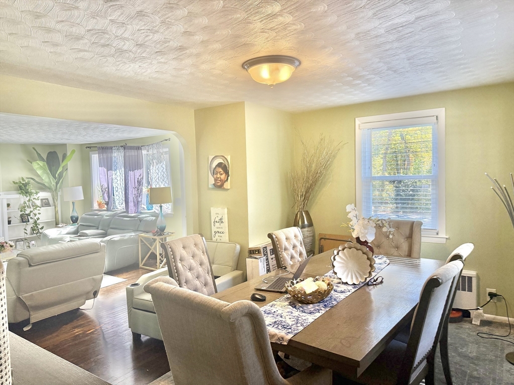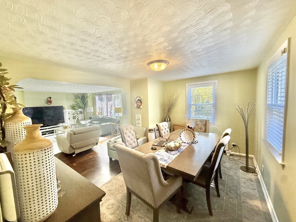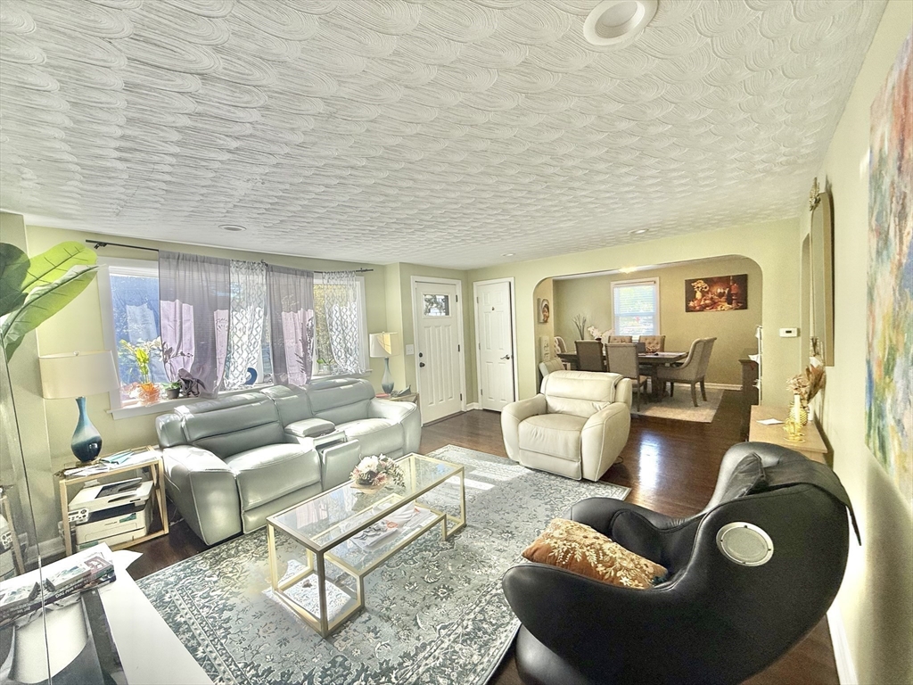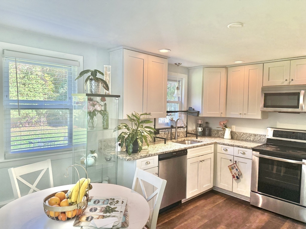 Sun-filled charming 3-Bedroom Ranch with Expansion Potential in Stoughton offers comfort, convenience, and exciting possibilities for future growth. The front entrance welcomes you to a spacious fireplaced living room. A side entrance leads to a warm mudroom that flows into the updated kitchen, complete with stainless steel appliances and granite countertops. Hardwood floors run throughout the main level and the partially finished basement provides versatile space for a playroom, media room, or home office—with ample potential for further expansion to suit your needs. Step outside to enjoy the expansive backyard, perfect for summer barbecues, gardening, or peaceful relaxation. Additional features include central air and close proximity to the commuter rail, offering easy access to Boston and surrounding areas.