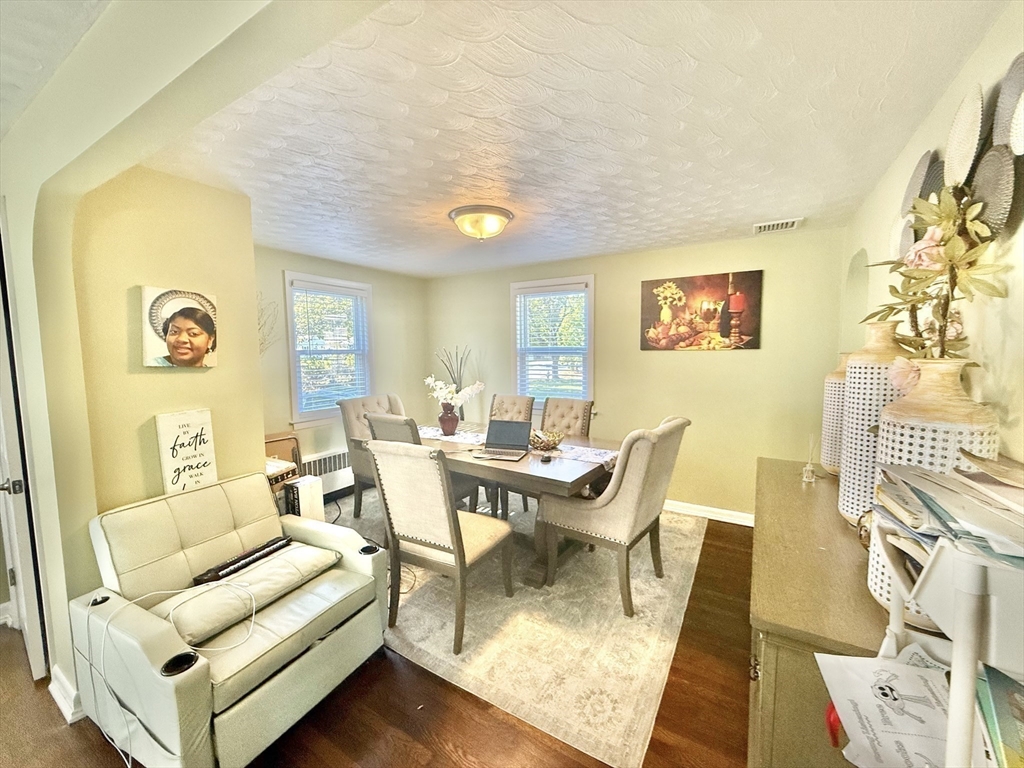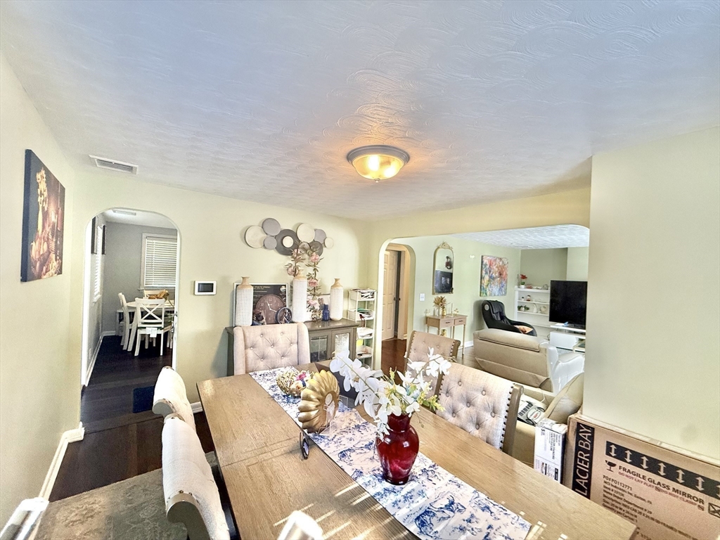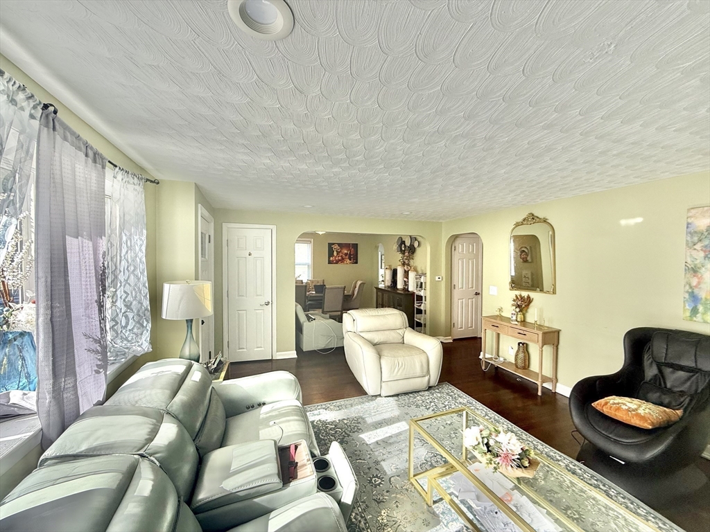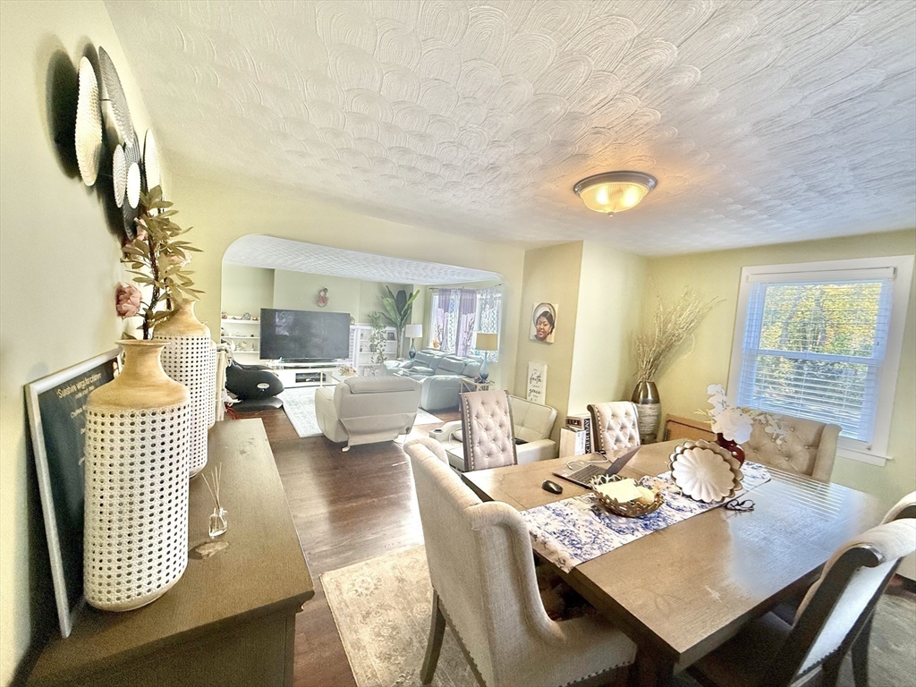 Sun-filled charming 3-Bedroom Ranch with Expansion Potential in Stoughton offers comfort, convenience, and exciting possibilities for future growth. The front entrance welcomes you to a spacious fireplaced living room. A side entrance leads to a warm mudroom that flows into the updated kitchen, complete with stainless steel appliances and granite countertops. Hardwood floors run throughout the main level and the partially finished basement provides versatile space for a playroom, media room, or home office—with ample potential for further expansion to suit your needs. Step outside to enjoy the expansive backyard, perfect for summer barbecues, gardening, or peaceful relaxation. Additional features include central air and close proximity to the commuter rail, offering easy access to Boston and surrounding areas.