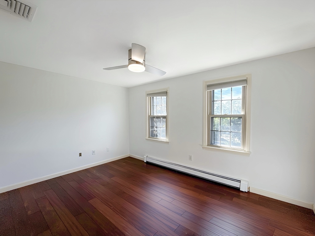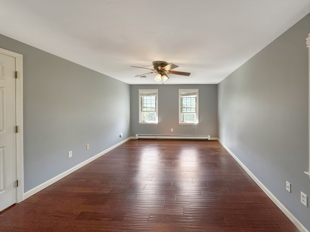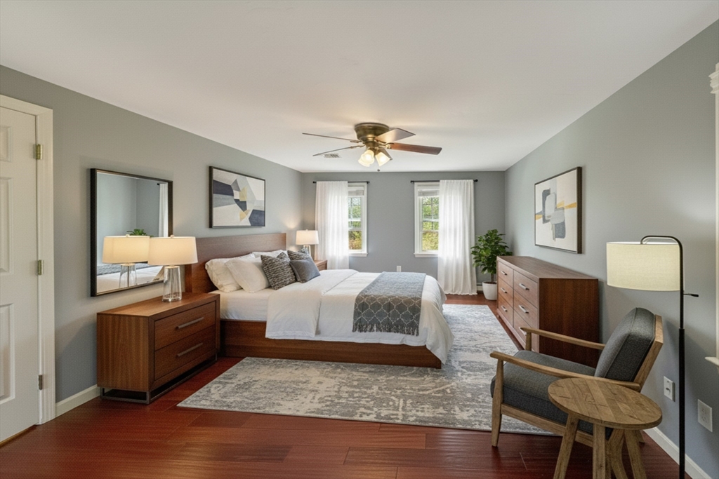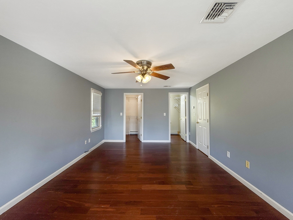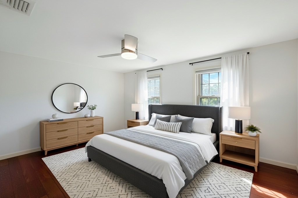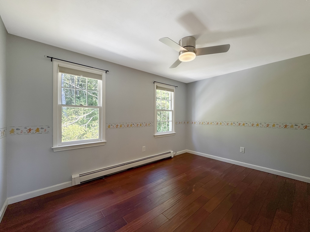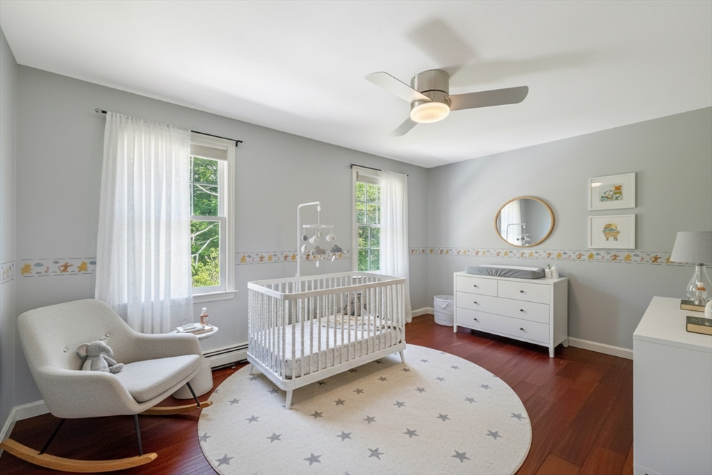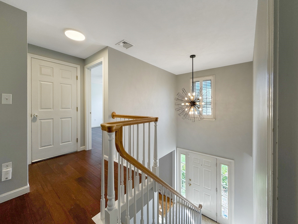 Discover the charm of this 3 bedroom, 1.5 bath Colonial with approx. 1,632 sq. ft. of living area. Open floor plan connects kitchen, dining, and living areas. Kitchen offers updated cabinetry, calacatta-style cathedral quartz countertops with full-height backsplash and integrated peninsula, Moen motion-sensor faucet, new induction stove with built-in air fryer, stainless appliances, and walk-in pantry. French door slider opens to TREX deck. Features CertainTeed siding with gutters, BOSCH 4-ton HVAC with automatic oil backup, hardwood floors, recessed lighting, fireplace, and starburst chandelier over staircase. Walk-out lower level provides storage and expansion potential. Includes generator inlet with transfer switch on panel. Sits well back from road providing privacy, paved drive, and landscaped yard.