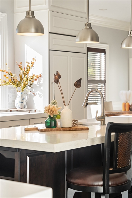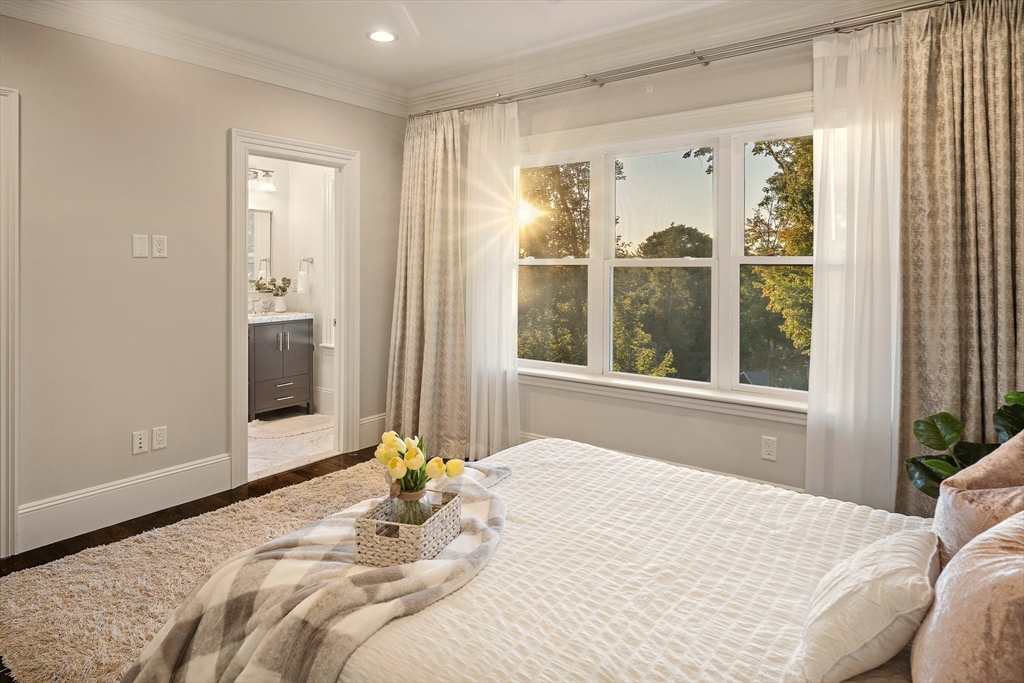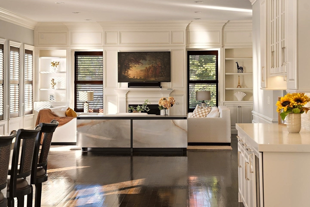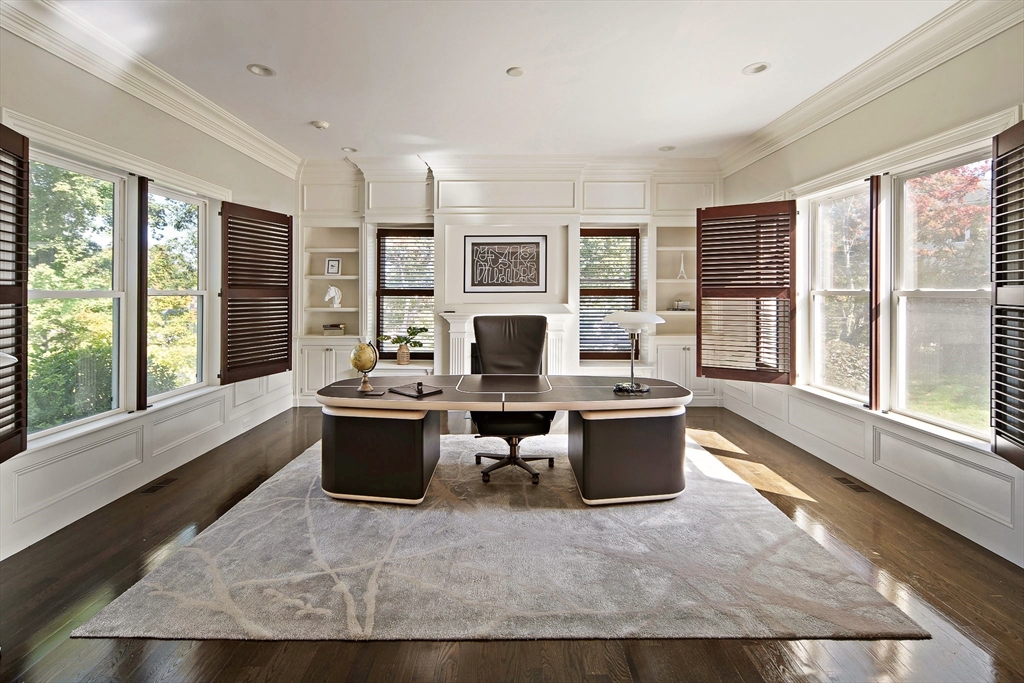 One-of-a-kind hilltop cul-de-sac villa in Newton Centre. This extraordinary residence offers a triple-bay garage, 8,000+ sqft of elegant living space, and unobstructed views. Its grand and natural light filled interior space is fully custom-built with soaring 10 to 13-ft ceilings, Sonos surround sound systems, fine millwork, gas fireplaces, and oversized windows. The kitchen features full-slab marble countertops, an enormous sink island, custom cabinetry, and top-tier Wolf gas range & Sub-Zero appliances. All 6 bedrooms are en-suite and featuring radiant-heated marble baths and closet/dressing rooms. The expansive walk-out garden level offers flexible living and entertainment area with floor-to-ceiling glass doors, a wet bar, and custom built-ins. Located just minutes from Newton Centre’s shops and restaurants with easy access to Route 9, I-90, and public transit. All furnishings may be included in the sale, offering a turnkey opportunity to enjoy this exceptional home immediately!