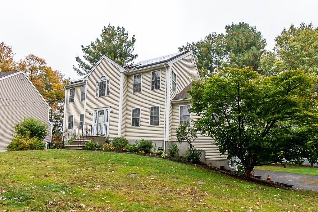 Welcome home to this beautifully maintained 4-bedroom, 2.5-bath Colonial set on a spacious 0.81-acre lot in a desirable Franklin neighborhood. The updated kitchen with open concept boasts modern finishes, granite countertops, ample cabinetry, and a center island—perfect for cooking and entertaining. The bright family room with vaulted ceiling and gas fireplace provides a warm gathering space for family and friends. Gleaming hardwood floors throughout are complemented by stylish tile accents. Upgraded en-suite bathroom in the main bedroom. The finished basement offers flexible space for a home office, gym, or media room. Step outside to the oversized two-tier deck overlooking a private, level backyard—ideal for summer barbecues or relaxing in nature. Completely wired for a generator system. Energy-efficient solar panels, EV charging system and a two-car garage (new garage doors) complete this exceptional home.