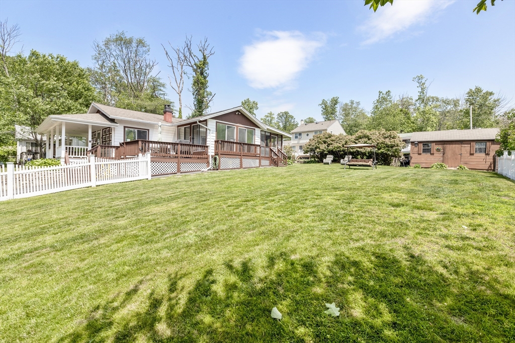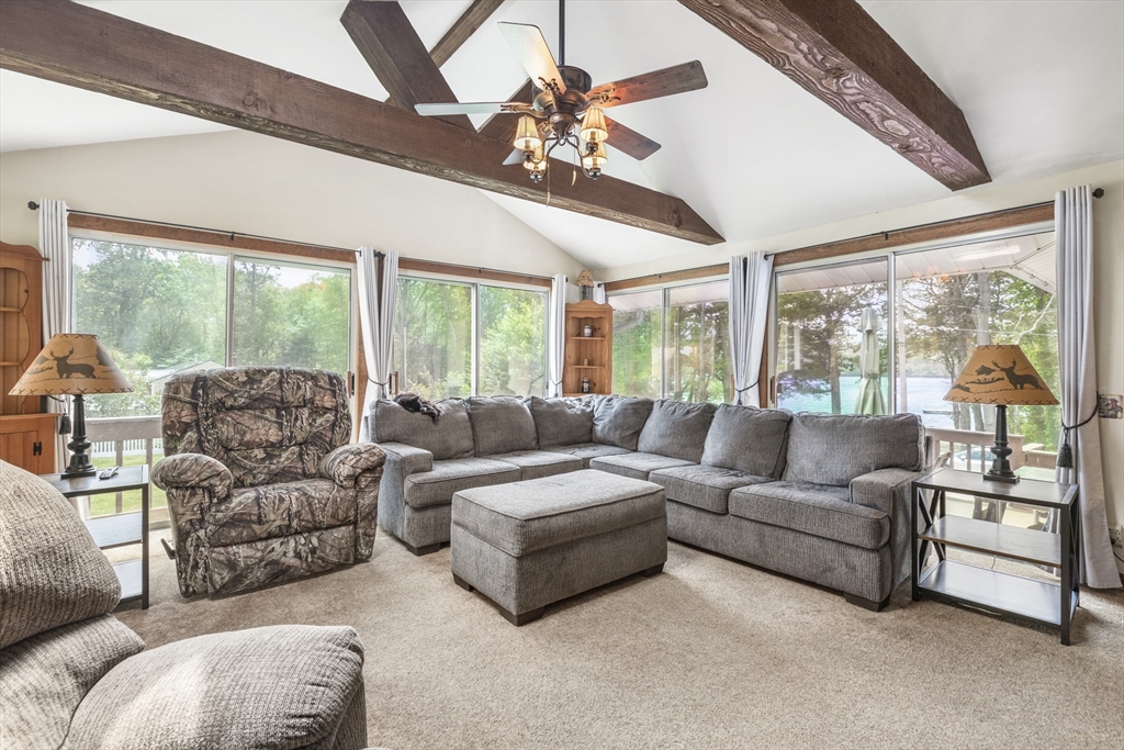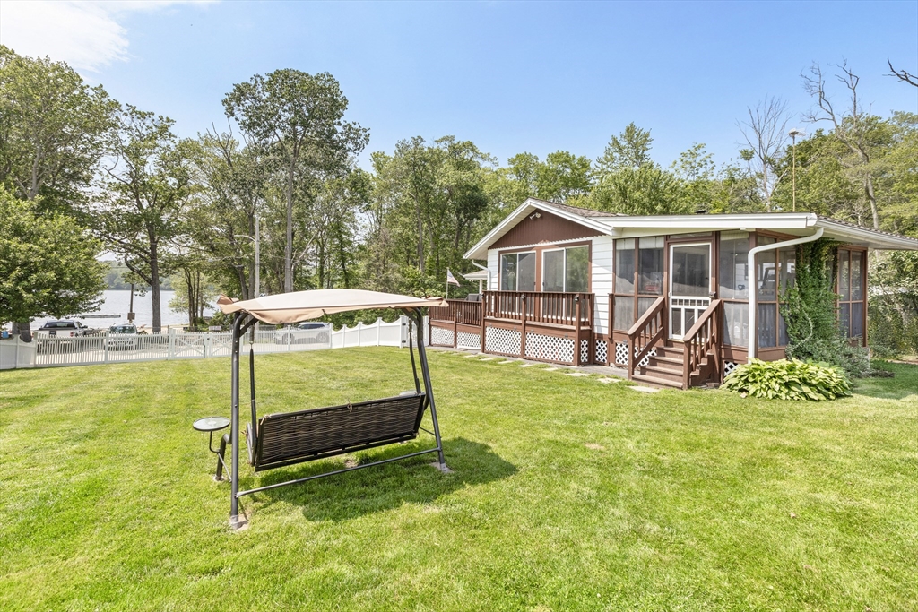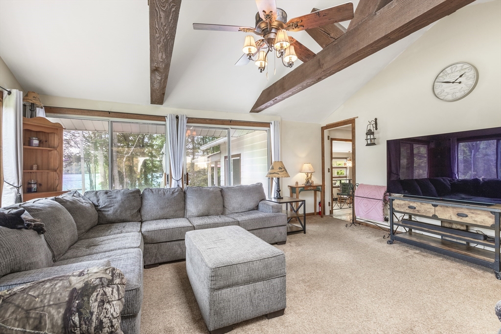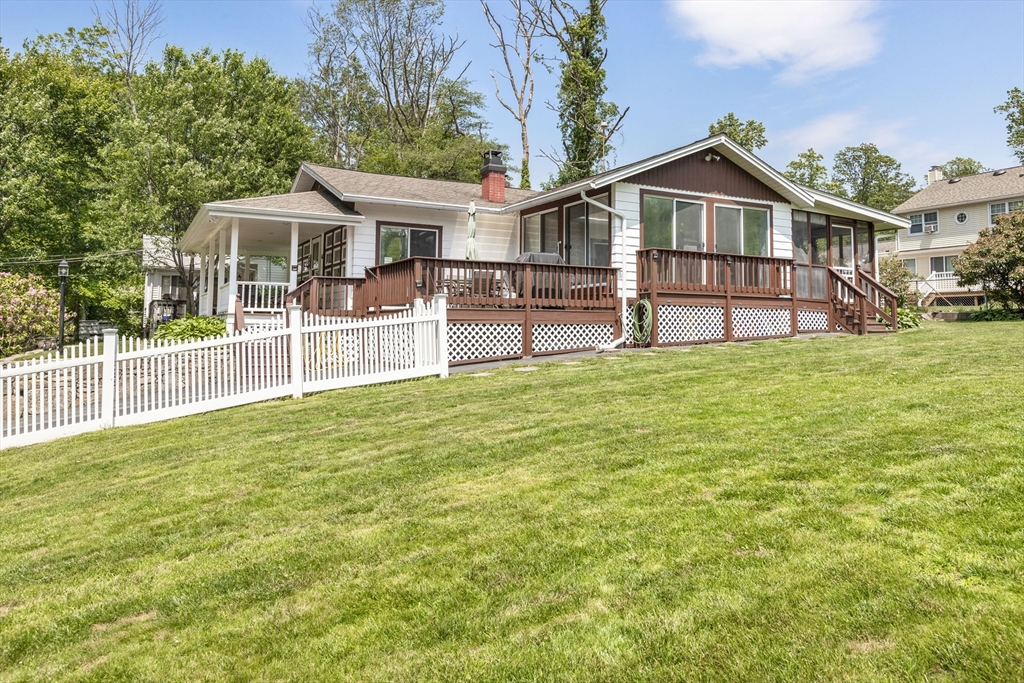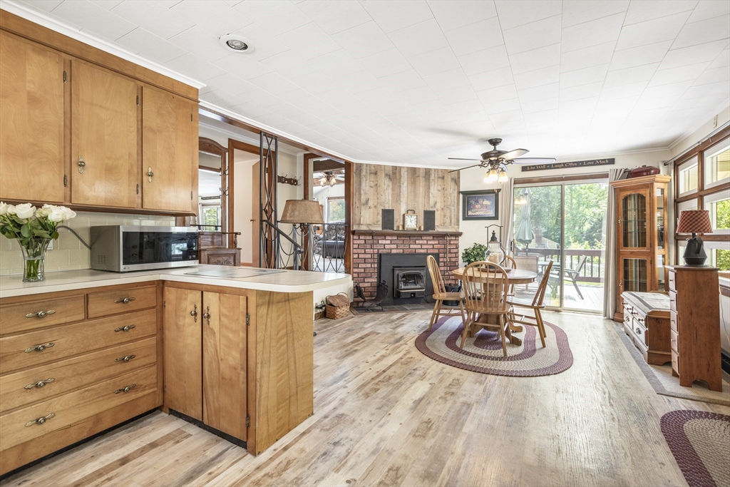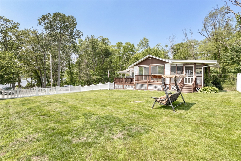 Welcome Home!! This WATERVIEW single-family residence offers Brand new roof, brand new septic system and brand new artesian well!! The living room is a captivating space defined by its high, vaulted ceiling and beamed ceiling, complemented by the warmth of a wood wall, all enhanced by Water views of Wallum Lake.The kitchen features a kitchen peninsula great for entertaining friends or family; its sunroom, porch, and deck, this property provides ample opportunities to enjoy the beauty of the surrounding state conservation area and the tranquil outdoors. The fenced backyard offers a secure space for relaxation and recreation, complete with an outdoor dining area perfect for entertaining. The open floor plan enhances the sense of spaciousness, creating an inviting atmosphere throughout the 1020 square feet of living area. The two bedrooms offer comfortable retreats weekend or year round. OPEN HOUSE 12:30-2:00 SATURDAY!! FREE Apple cider donuts!