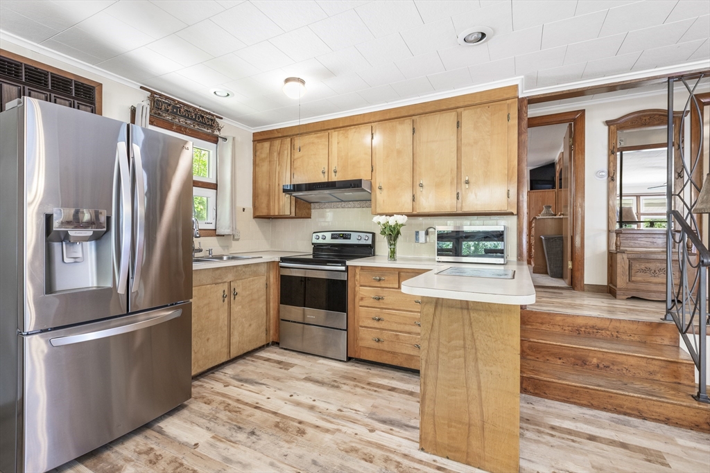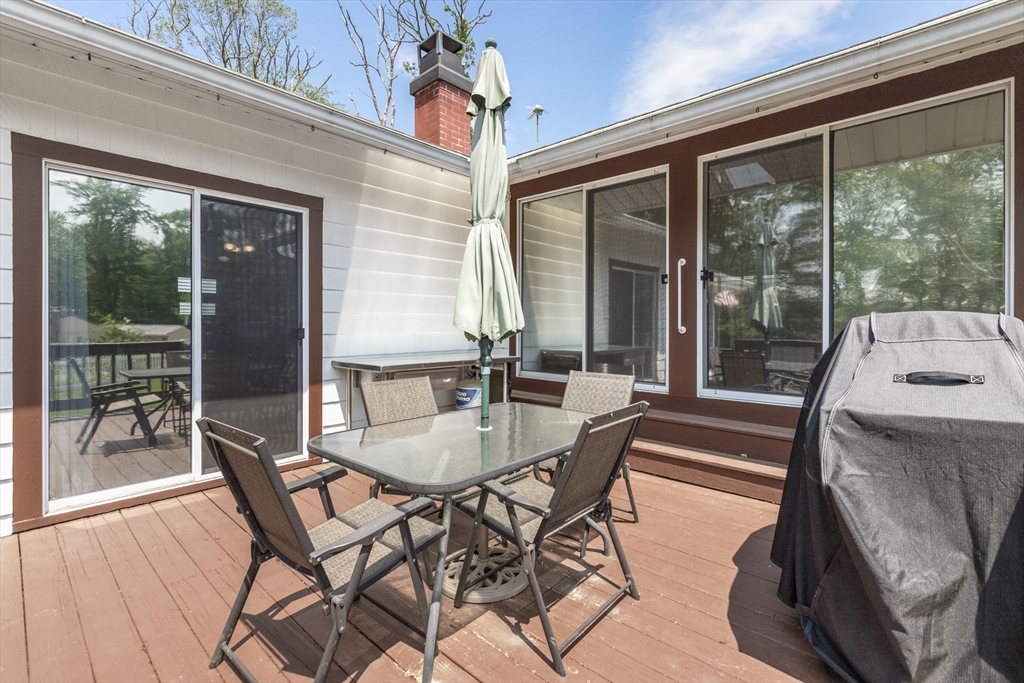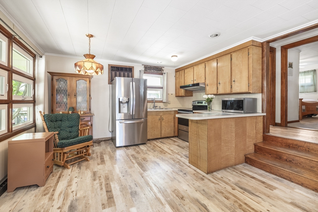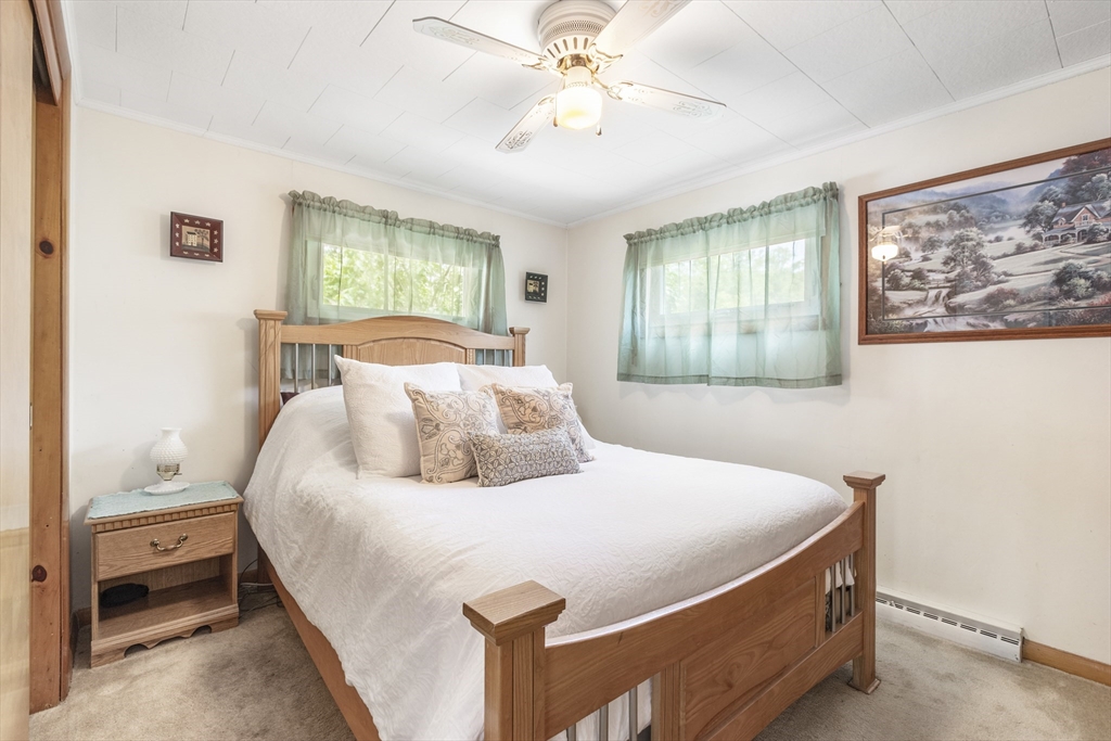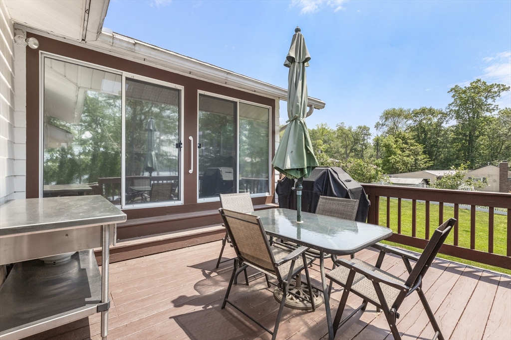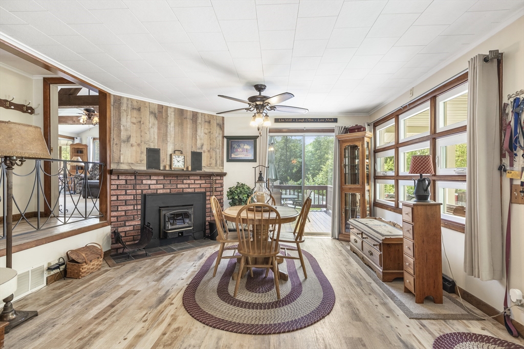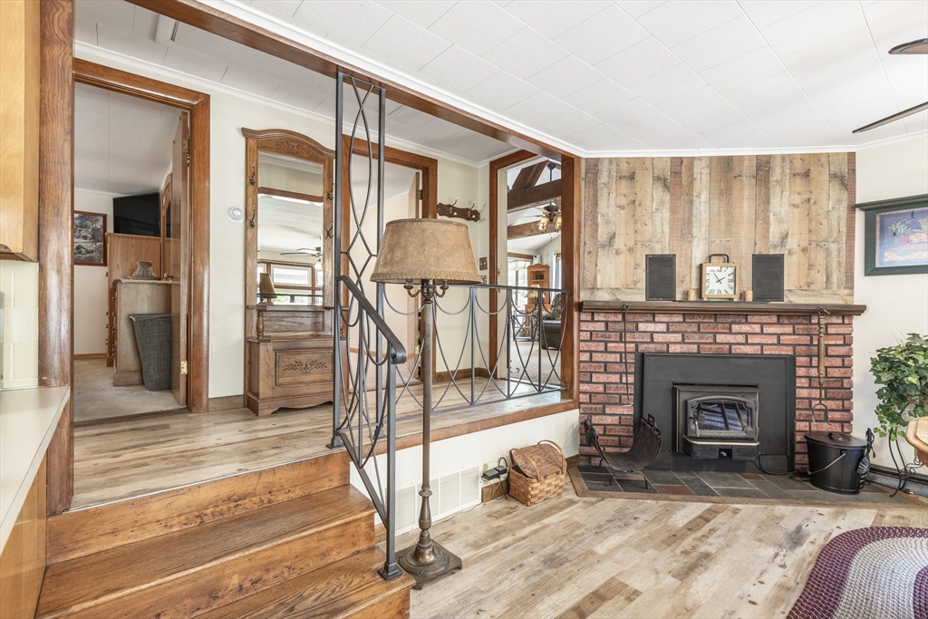 Welcome Home!! This WATERVIEW single-family residence offers Brand new roof, brand new septic system and brand new artesian well!! The living room is a captivating space defined by its high, vaulted ceiling and beamed ceiling, complemented by the warmth of a wood wall, all enhanced by Water views of Wallum Lake.The kitchen features a kitchen peninsula great for entertaining friends or family; its sunroom, porch, and deck, this property provides ample opportunities to enjoy the beauty of the surrounding state conservation area and the tranquil outdoors. The fenced backyard offers a secure space for relaxation and recreation, complete with an outdoor dining area perfect for entertaining. The open floor plan enhances the sense of spaciousness, creating an inviting atmosphere throughout the 1020 square feet of living area. The two bedrooms offer comfortable retreats weekend or year round. OPEN HOUSE 12:30-2:00 SATURDAY!! FREE Apple cider donuts!