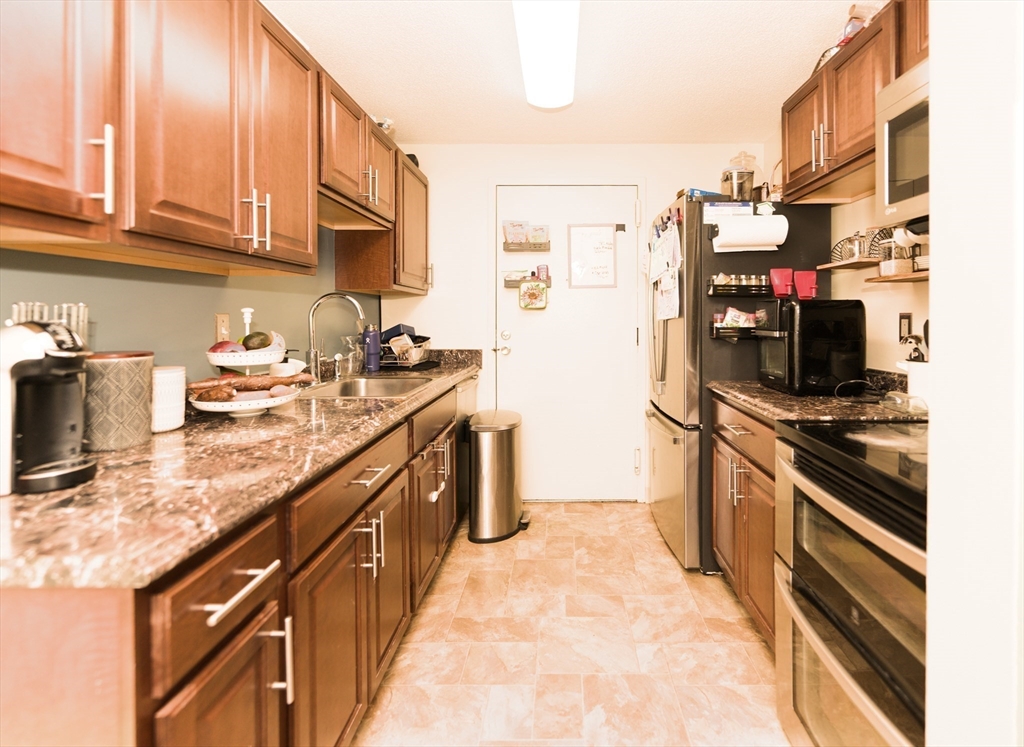 Rare find in Natick Green! Bright and private first-floor end unit facing the front with two bedrooms and an updated full bath with in-unit laundry. Features include an updated kitchen with countertops and stainless steel appliances, a new water heater (2024), newer windows, and a newer sliding door to a private porch with storage. Enjoy community amenities such as a clubhouse, pool, hot tub, tennis courts, and guest parking. Conveniently located near the commuter rail, shopping, Mass Pike, and Route 9, and more.. OH Sunday from 12-1:30pm