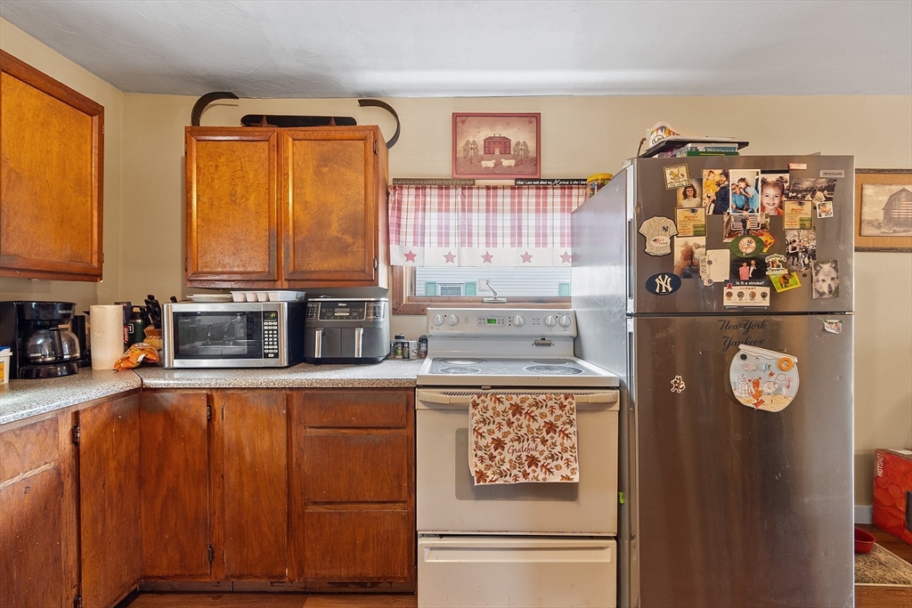 Investors or owner-occupants, don’t miss this charming and well-maintained two-family home, perfectly situated for commuters. Each unit features 2 bedrooms, a welcoming living room, an eat-in kitchen, full bath, covered porch and back deck—ideal for comfortable living. The property has seen a large number of capital improvements within the last year to include; a new roof, new vinyl siding, one new boiler, 9 new windows, chimney replacement from the roof up, new front porch,some new flooring, and also had Mass Save insulate attic. The apartments have their own access to the divided basement allowing for additional storage. Each unit has their own parking spaces which allows for 2 vehicles on each side. The peaceful backyard offers a quiet outdoor space and the shed offers a place for outdoor tools. This versatile home is great for generating rental income, generational living or owner-occupancy. Don’t miss this fantastic opportunity—schedule your showing today!