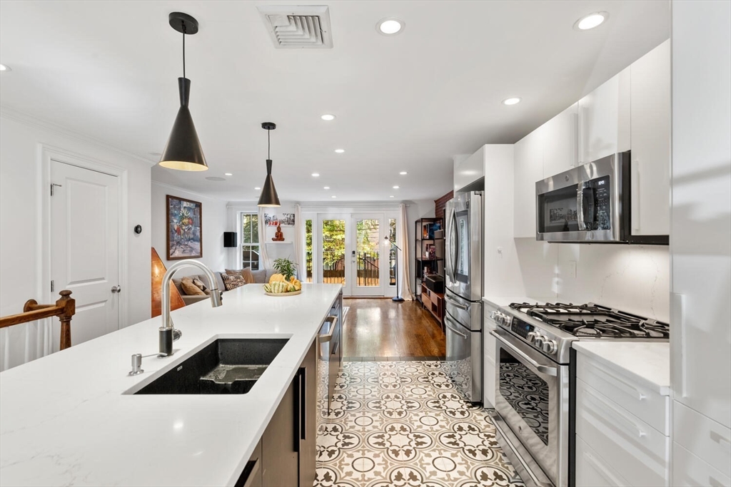 Perfectly situated on one of the South End’s most desirable streets, this 2-bedroom, 2.5-bath duplex blends brownstone charm with modern design. The open-concept upper level features a sleek kitchen with stone countertops, stainless steel appliances, and an oversized island flowing into a bright living and dining area. Step out to your private deck — ideal for entertaining — with stairs leading down to a fenced patio and garden area. The spacious primary suite offers a large bedroom with custom closets and a luxurious en-suite bath with double vanity and soaking tub. The second bedroom also features its own full en-suite bath, perfect for guests or a home office. Additional highlights include central air, in-unit laundry, and low condo fees in a well-kept three-unit association. Just moments from the neighborhood’s top restaurants, cafés, and Back Bay Station — this home captures the best of city living with private outdoor space rarely found in the South End.