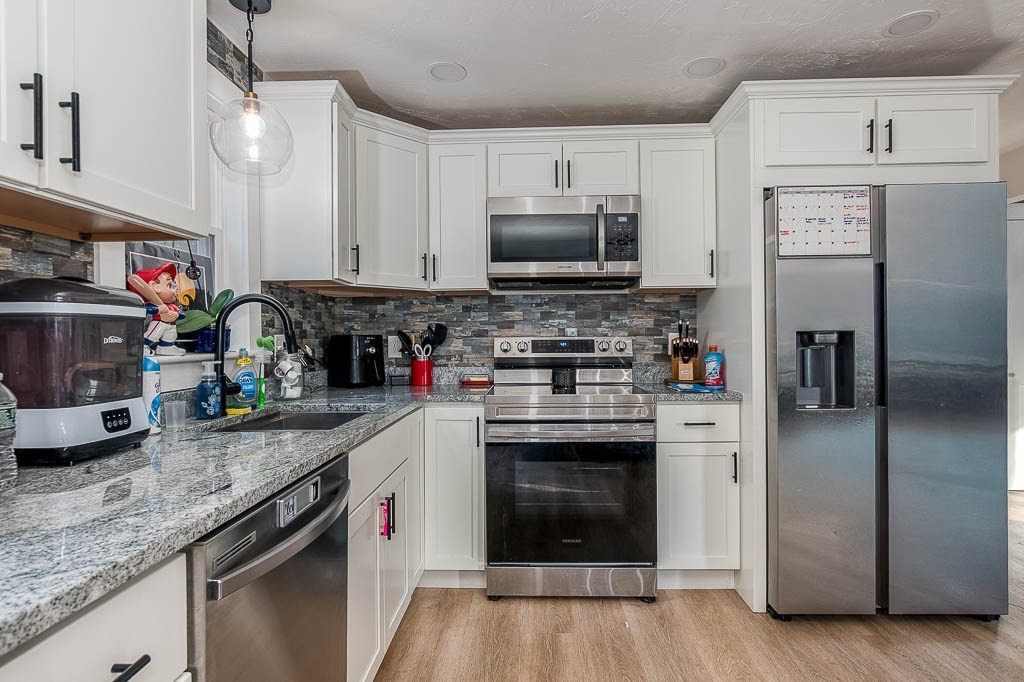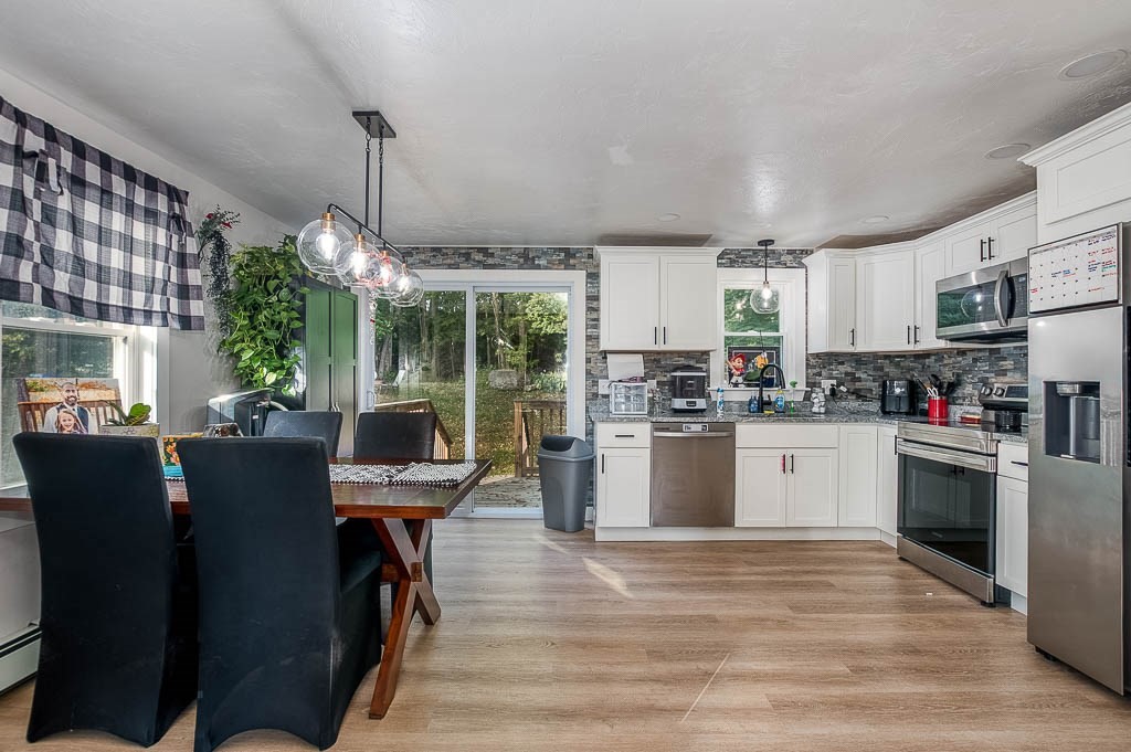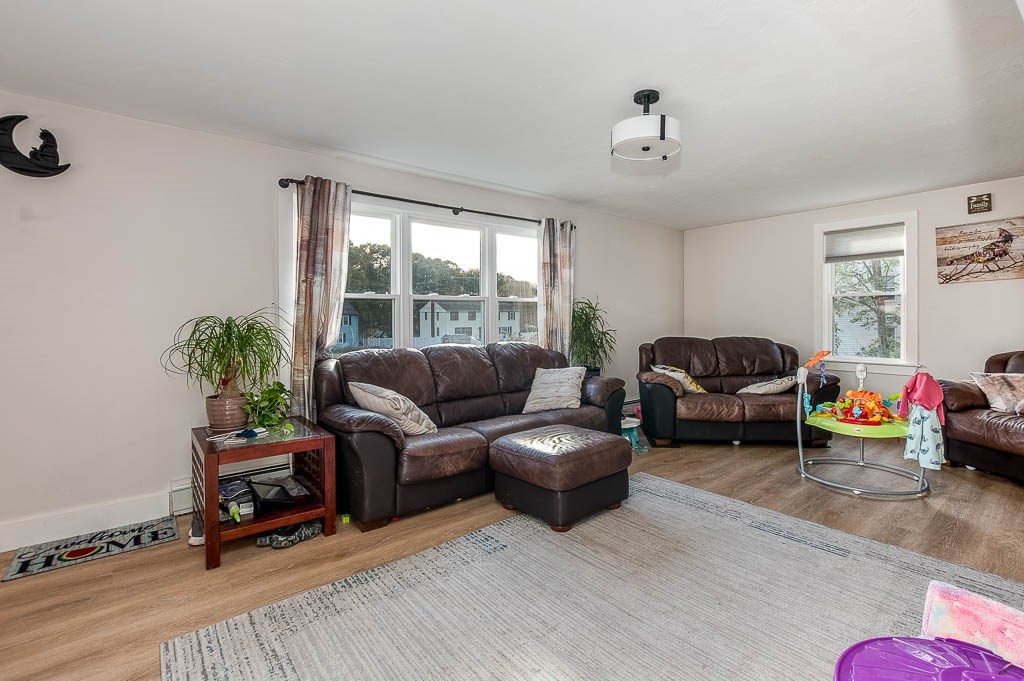 ***Showings to begin at open House on Sunday 10/19/2025 from 11 AM - 1 PM*** Great location and setting at the end of a cul de sac for this updated 3 bedroom 2 bath half duplex! On the main living level, this spacious home features an eat in kitchen with Shaker style cabinets, granite countertops, recessed lights and laminate flooring along with a good sized living room and full bath with laundry hook up. Upstairs are the 3 bedrooms, all with wall to wall carpeting and ample closet space plus the other full bath. The bathrooms in the home feature granite countertops along with ceramic tile flooring and linen closets. The partially finished basement offers additional living area, storage, and room to spread out with a large family room and office/other room. Other features include no condo fees, a deck, shed, city water and private sewer. The location offers great access to shopping, highways, and the new East Taunton Commuter rail station.