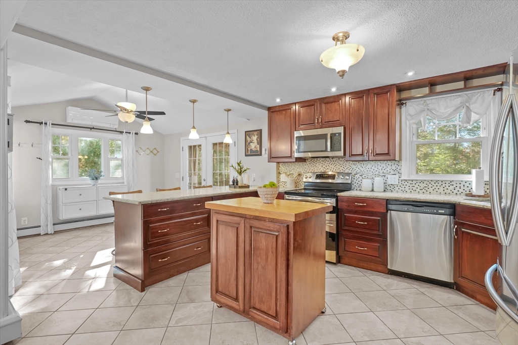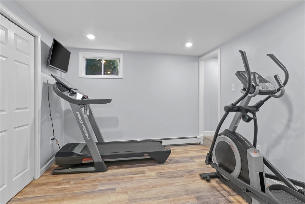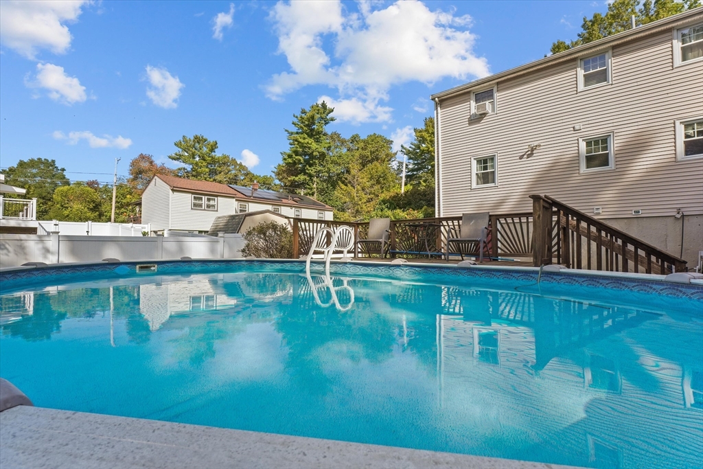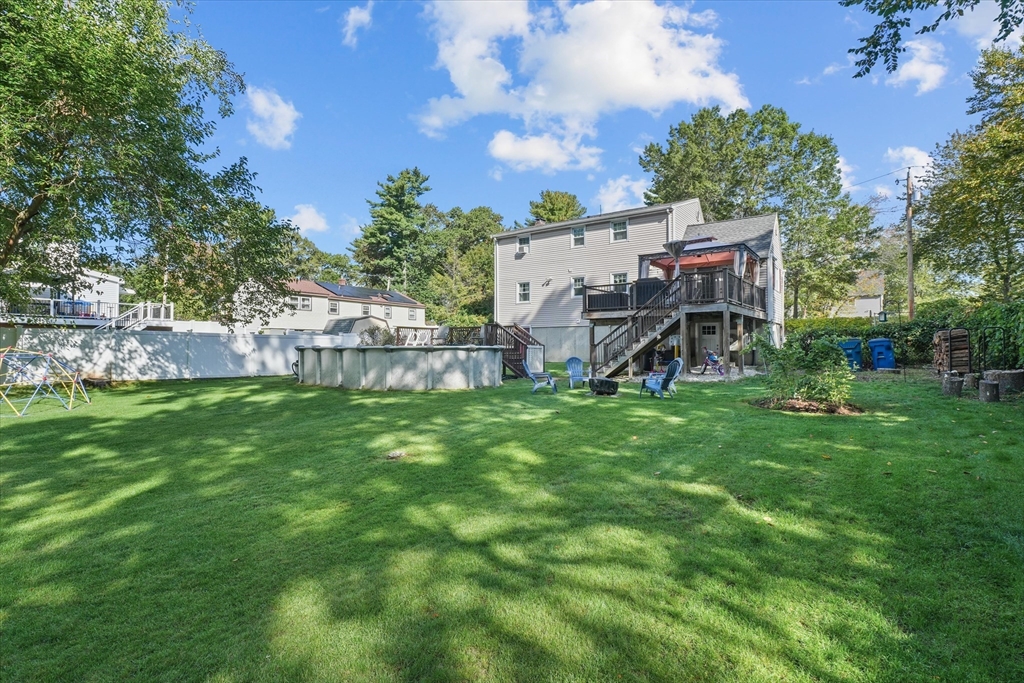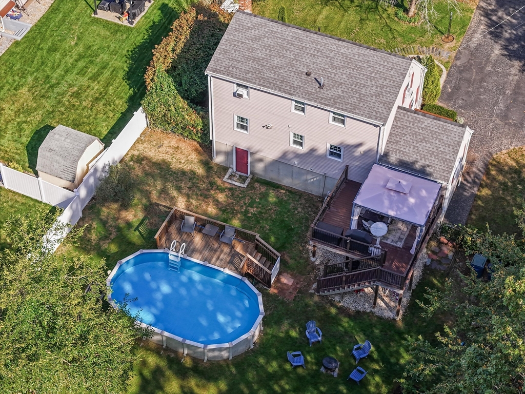 The one you have been waiting for! This home checks every box - space, updates, storage & a fantastic yard in a neighborhood setting. Warm & inviting, this beautiful Cape offers a layout that simply works with a fireplaced family room, dining room & updated granite kitchen with custom cabinetry & peninsula seating. A sun-filled bonus room with cathedral ceiling opens to the outdoor living area for easy indoor-outdoor flow. The 1st floor bedroom adds flexibility for a home office or guest space, while the 2nd floor offers 3 additional bedrooms with great storage. The finished lower level provides even more living space for media, fitness or play. Peace of mind comes with a newer roof, heating system, 2024 hot water tank & Nest smart thermostats.The fenced backyard is built for enjoyment, offering an expansive composite deck & gazebo, above-ground pool, storage shed & plenty of space to relax or play. Great location near schools, shopping & commuter routes. Truly a must see!