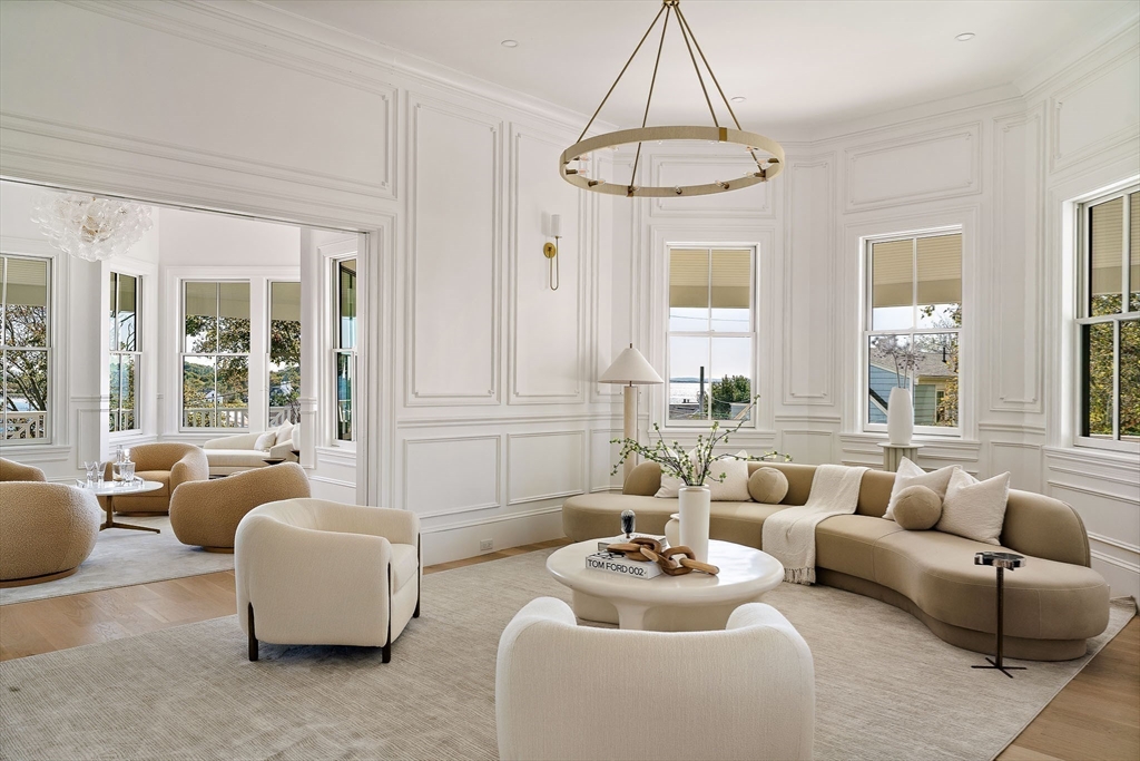 A once-in-a-lifetime opportunity to own one of the North Shore’s most architecturally significant estates. Perched above the Atlantic Ocean, this commanding 1880 Queen Anne mansion has undergone a multi-million-dollar restoration, honoring its historic grandeur while reimagining it for modern luxury. Spanning 10,820 sq ft across 4 levels, it offers 8 beds, 6.5 baths, a 3-car garage, & a walk-out lower level with a theatre & wine lounge. A grand entry hall with carved millwork, arched thresholds & paneled walls set the tone for timeless elegance. With the ocean as a constant backdrop, historic details remain the soul of the home. The refined coastal kitchen opens to a wraparound porch & outdoor patio. Upstairs, find a tranquil primary suite, au pair quarters, and a dramatic library lounge. At its peak, a restored turret offers 360° ocean & skyline views. Only 20 mins from Boston, this residence stands as a rare preservation of history reimagined for the next century of coastal living.