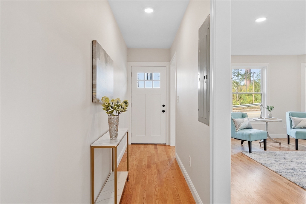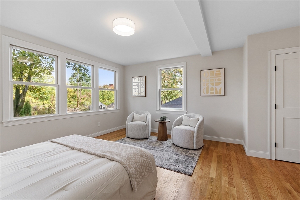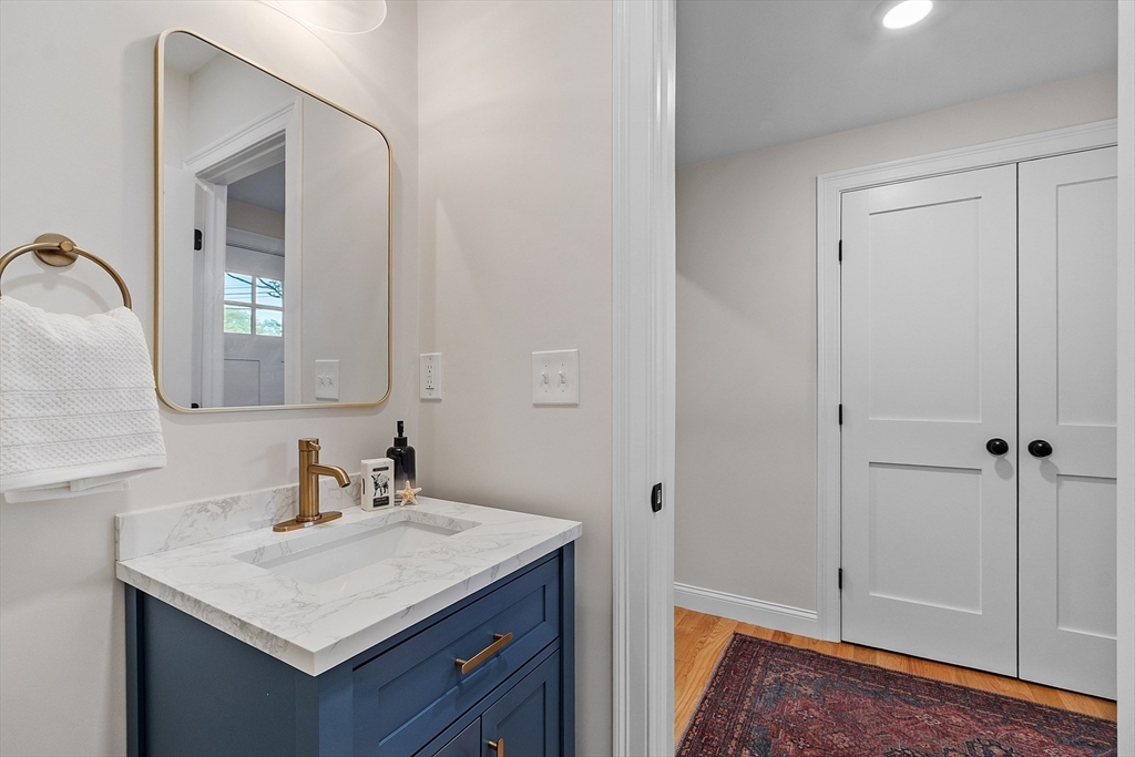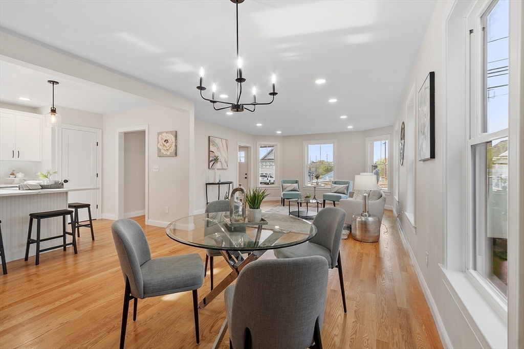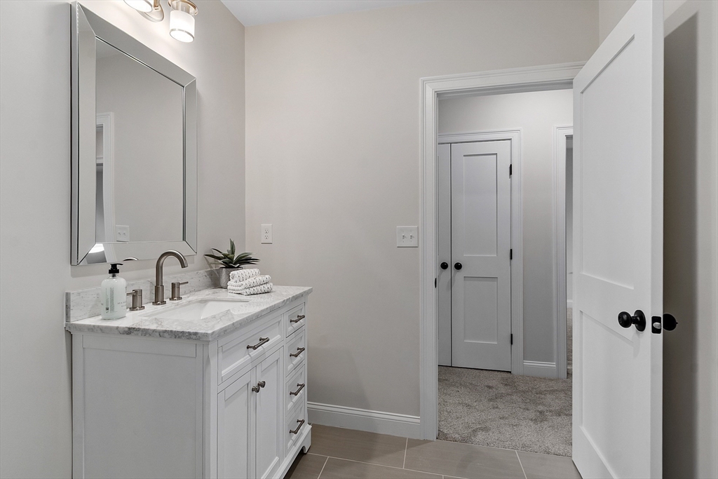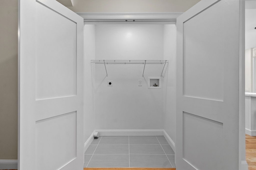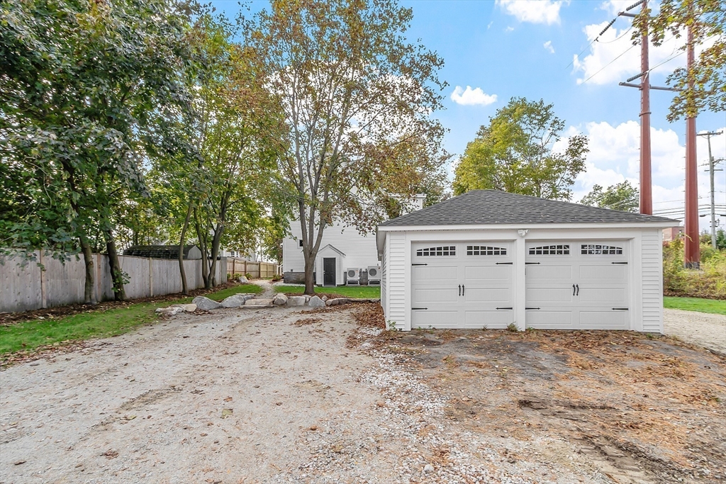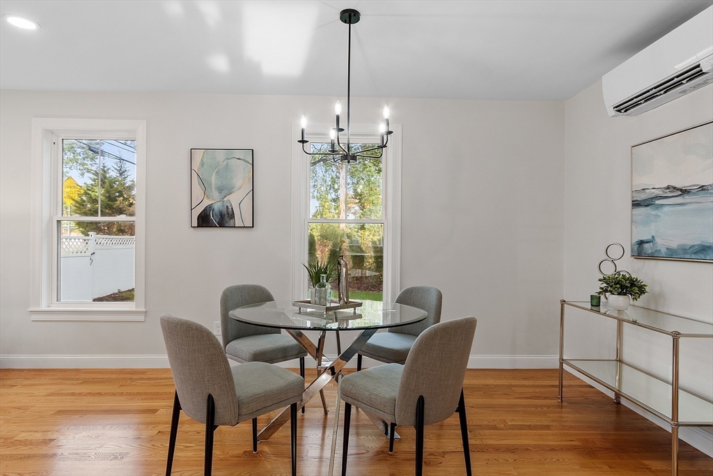A fully reimagined two-family home transformed into two distinct condominium residences, each with its own private entrance, separate living spaces, and modern design. Occupying the first and second floors, this 3-bed, 2.5-bath home offers 1,760 sq. ft. of open-concept living. Sunlight fills the living and dining areas that flow into a designer kitchen with white shaker cabinetry, quartz counters, and GE stainless appliances. The first-floor primary suite features two his and hers closets and spa-inspired bath with tiled shower, glass shower door and double vanity. A stylish half bath and laundry add convenience. Upstairs, two bedrooms share a full bath. Rebuilt from the studs with new roof, siding, windows, plumbing, electrical, and Mitsubishi mini-splits. Full basement, private landscaped entry, shared 2-car garage, and two parking spaces complete this modern, comfortable North Chelmsford home.