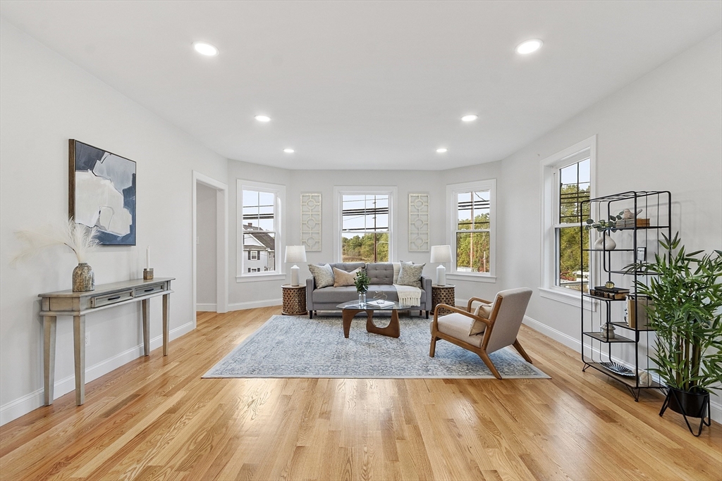 Occupying the second and third floors of a fully reimagined two-family residence, this 3-bed, 1.5-bath home with its own private entrances, separate living spaces, and modern design. offers 1795 sq. ft. of bright, modern living. The open-concept main level features hardwood floors and a dream kitchen with white shaker cabinets, quartz counters, and GE stainless-steel appliances. A stunning half with design fixtures and laundry area, complete the second floor and add style and convenience. Upstairs, unique architectural features await you with a spacious primary bedroom with double closets, two additional bedrooms. a sitting area and a full bath. Rebuilt from the studs with all-new roof, siding, windows, plumbing, electrical, and Mitsubishi ductless mini splits this is a unique opportunity that combines charm with all the modern conveniences and includes a shared 2-car garage, 2 additional parking spaces, and beautifully landscaped setting.