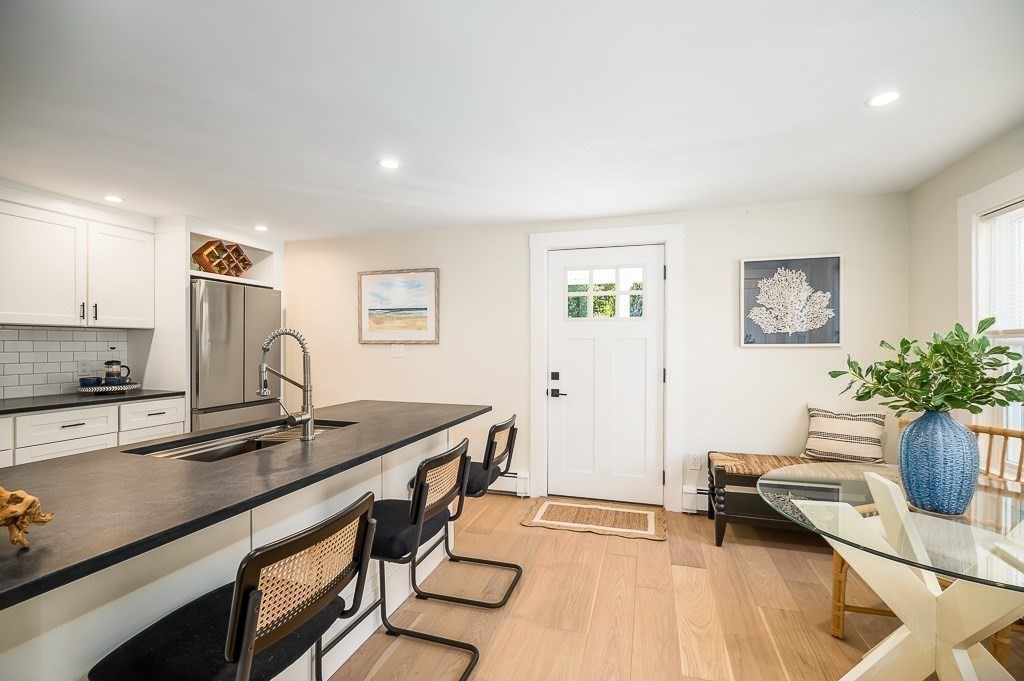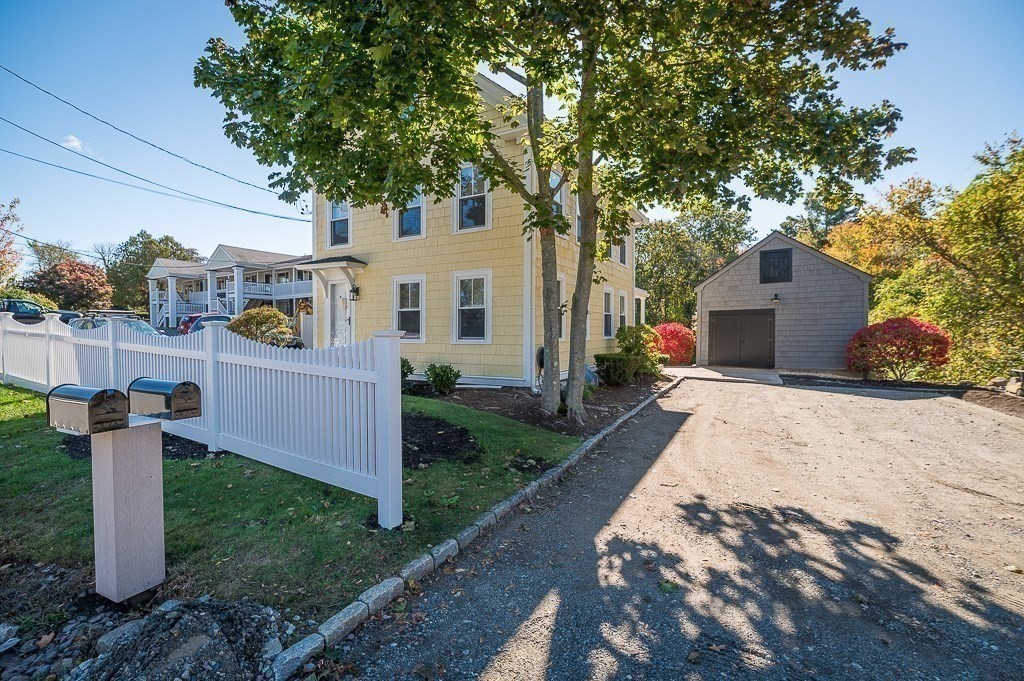 Sparkling and fully renovated, this antique unit blends historic charm with modern comfort. Bright, spacious, and filled with character, it offers worry-free living with a new roof, windows, flooring, kitchen, and bath—no maintenance for years to come. The inviting eat-in kitchen features a breakfast bar, abundant counter space, stainless steel appliances, generous cabinetry, and a pantry closet. Wide oak flooring adds warmth and style, flowing into a casual yet refined family room—perfect for relaxing or entertaining. Upstairs are two spacious bedrooms with full closets and a stylish bath featuring subway tile, a tub/shower combo, and a custom oak vanity. A convenient second-floor laundry area and attic access add everyday ease and extra storage.Additional highlights include a 15x9 storage area in the adjacent barn, a basement storage cage, two deeded parking spaces, and a welcoming farmer’s porch. Professional landscaping and a sun-filled backyard complete this exceptional offering.