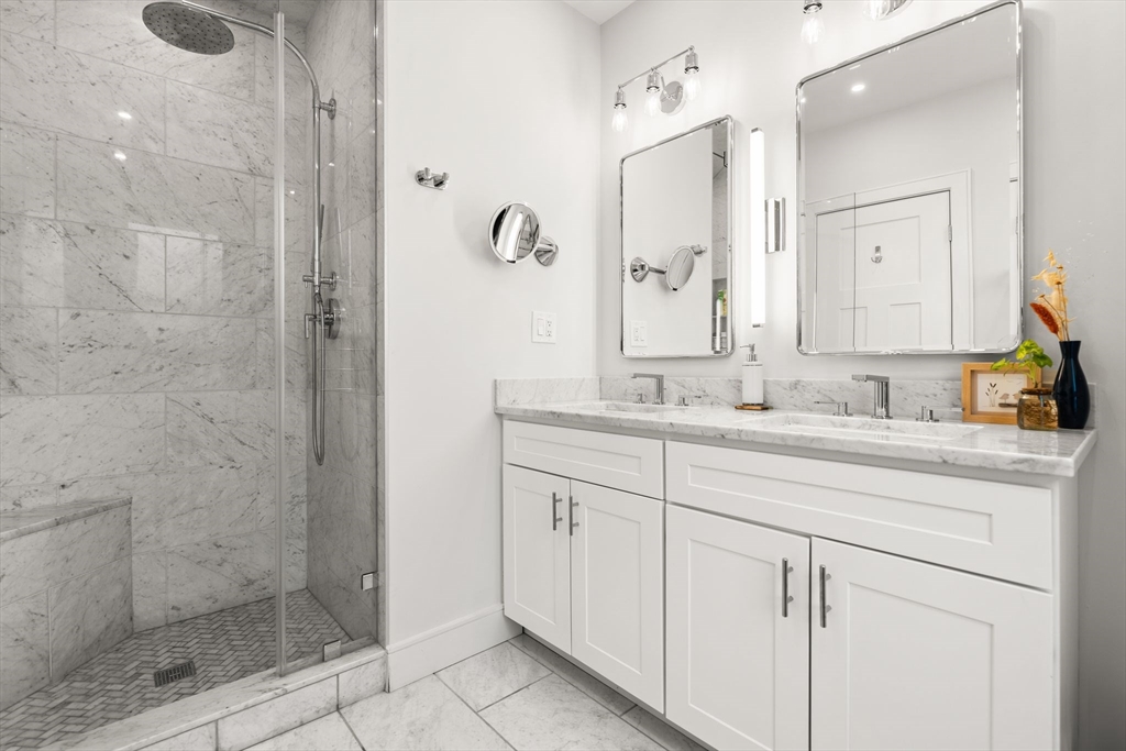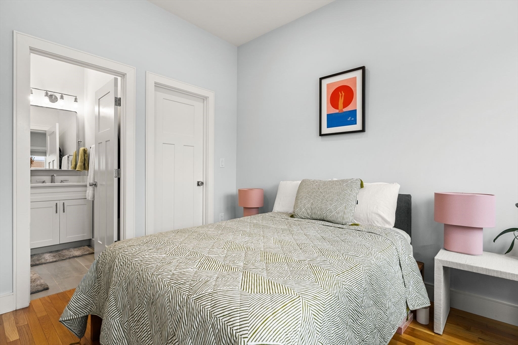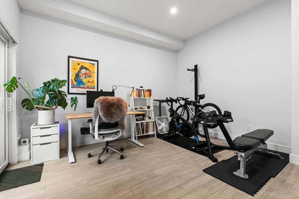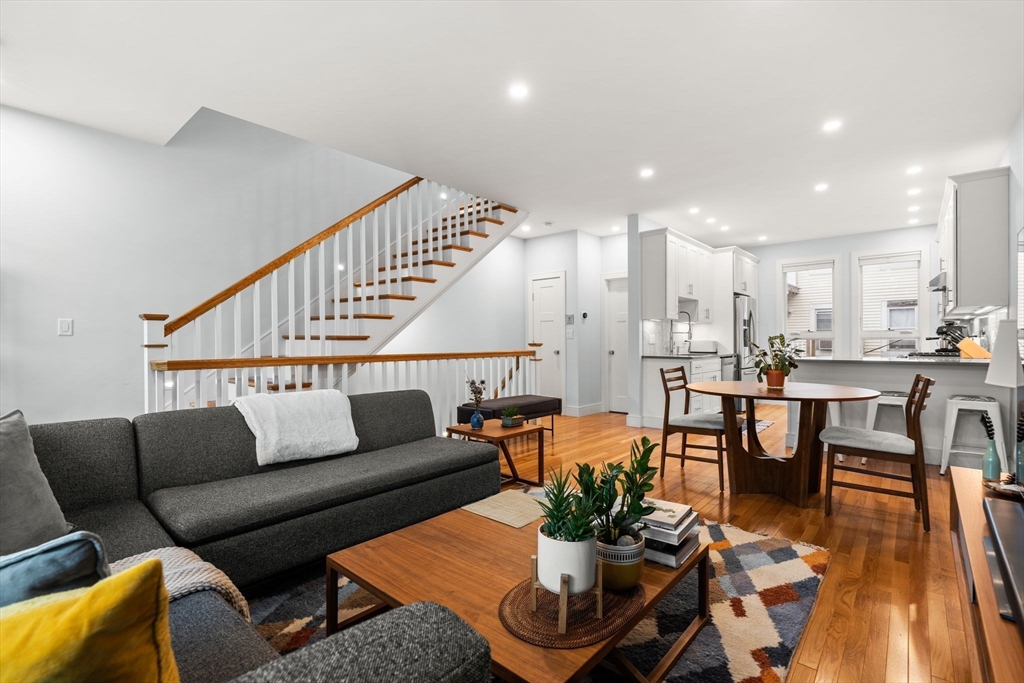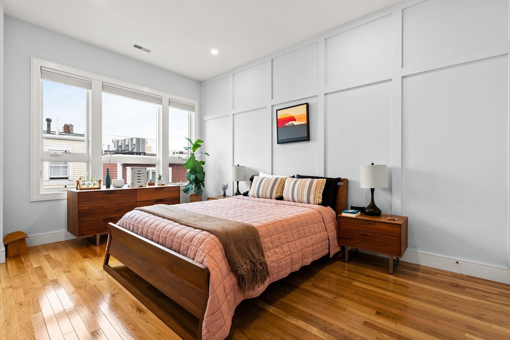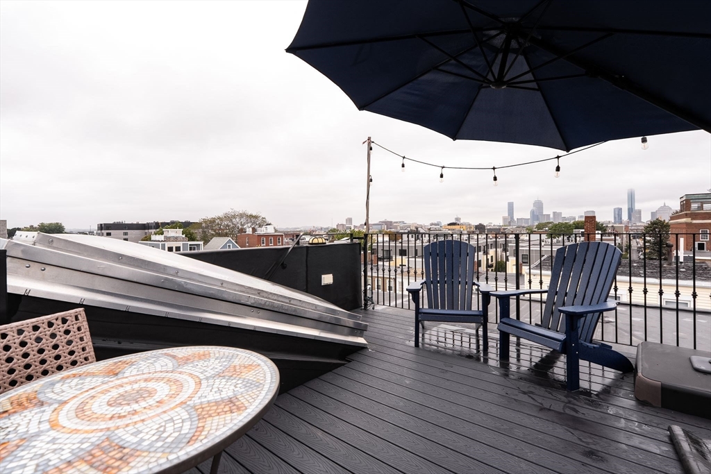 Avail 12/1 or 1/1. This beautiful 2020 townhouse, unfolds across 1641 sq feet of meticulously crafted space. Designed with a blend of style and functionality, the open-concept kitchen features ample cabinetry, high-end stainless steel appliances, & quartz countertops with a peninsula perfect for entertaining. The flexible dining and living areas are bathed in natural light, thanks to oversized windows and high ceilings, creating an inviting atmosphere. On the upper level you'll find the primary bedroom, a serene retreat that accommodates a king-sized bed, complemented by a luxurious bathroom and a wall of closets. The spacious second bedroom also offers its own en-suite bath and generous closet space. On the lower level, discover a versatile space perfect for a home office and gym, or use it as a third bedroom with access to a walkout patio. This home is complete with a private roof deck with sweeping views of the Boston skyline, a one car garage, central AC and hardwood throughout.