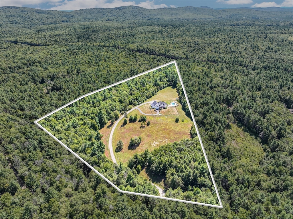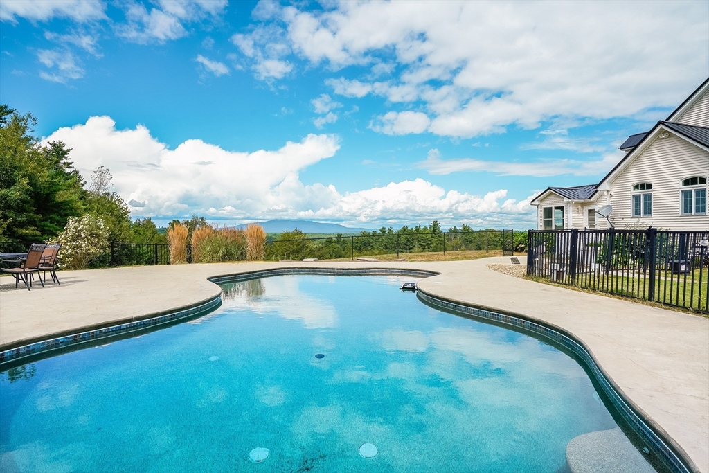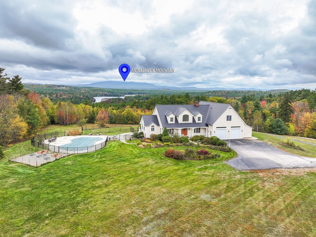 Luxury living at its best! Sunsets like no other over the peak of Mount Monadnock, Hubbard pond and beyond, this will surely take your breath away! Set on 22 acres of complete privacy for you to escape the hustle of the everyday life. Easy living on one floor with grand entertaining space from the two story living room and the three season porch. The primary suite offers a true retreat, complete with two separate closets spa-inspired bathroom and luxurious privacy . Well appointed kitchen offering high end appliances within steps from the established herb garden and walk in pantry. Entertain from the Sunroom just steps from the expansive deck and patio area. Relax pool side by the gunite heated pool over looking the well established irrigated lush lawn and perennial gardens. In-law/ caretakers suite offering full kitchen, living space and bedroom. Whole house A/C, whole house generator system for piece of mind. Over sized heated attached garage with a second heated garage below for all
