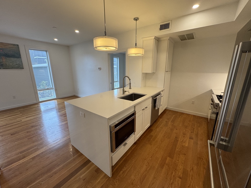 Stunning penthouse-level 2 bed, 2 bath condo in the heart of South Boston! Built in 2020, this modern unit features an open floor plan, oversized windows, and a sleek kitchen with shaker cabinets, Bosch stainless steel appliances, and hardwood floors throughout. Enjoy a private roof deck with city views and a gas grill, perfect for entertaining. Additional highlights include in-unit laundry, central heat & A/C, and one heated garage parking space. Prime location near Andrew Sq, the Red Line, Carson Beach, and South Bay Center. Tenant responsible for electric and gas. Water, sewer, exterior maintenance, snow removal, and one parking space included. Available now. Pets negotiable. First month’s rent and a security deposit required.