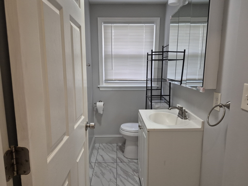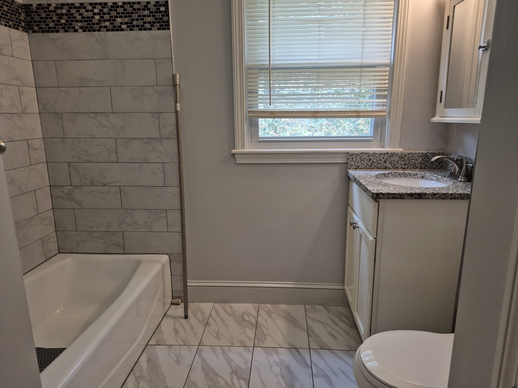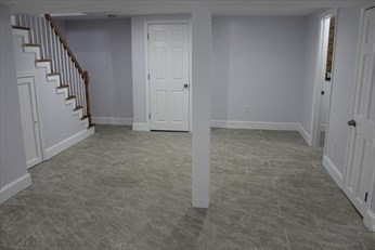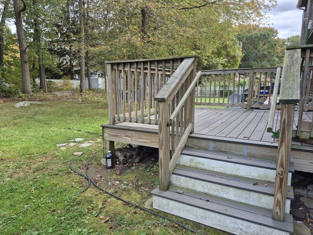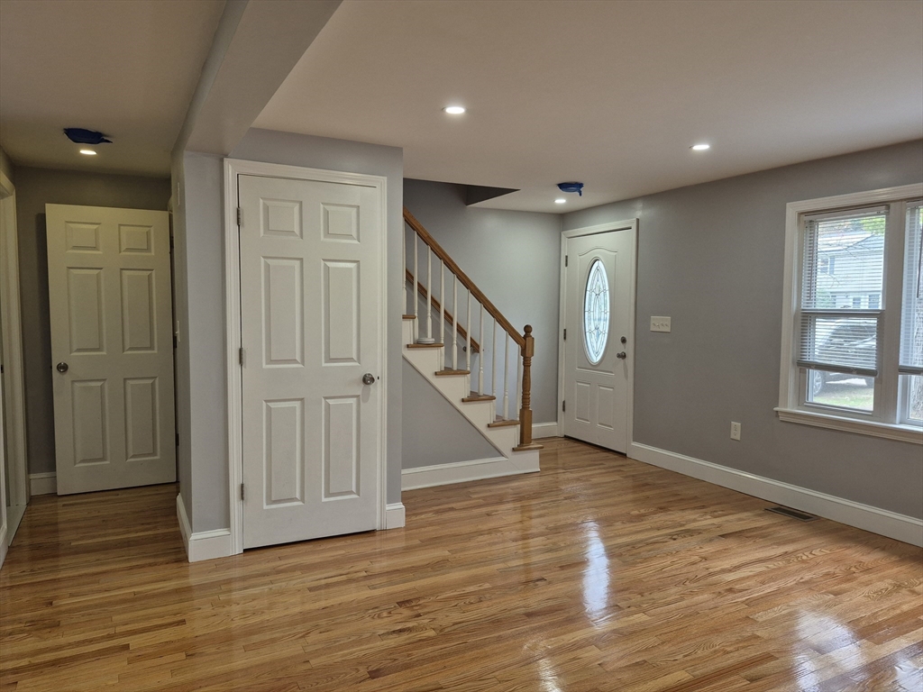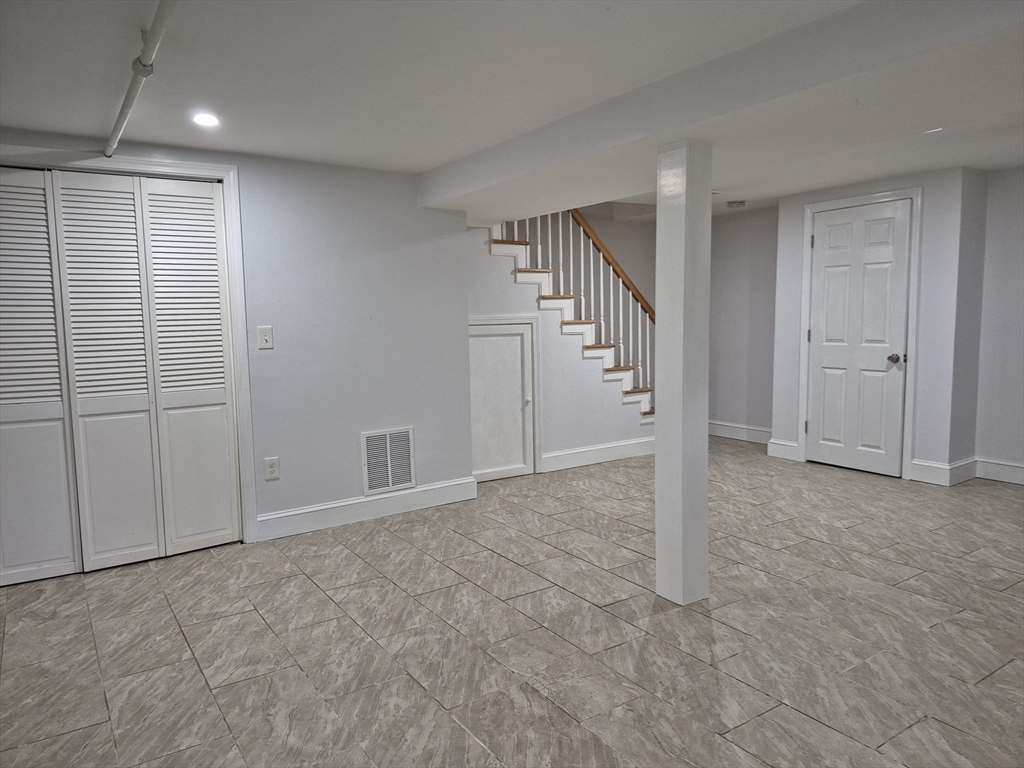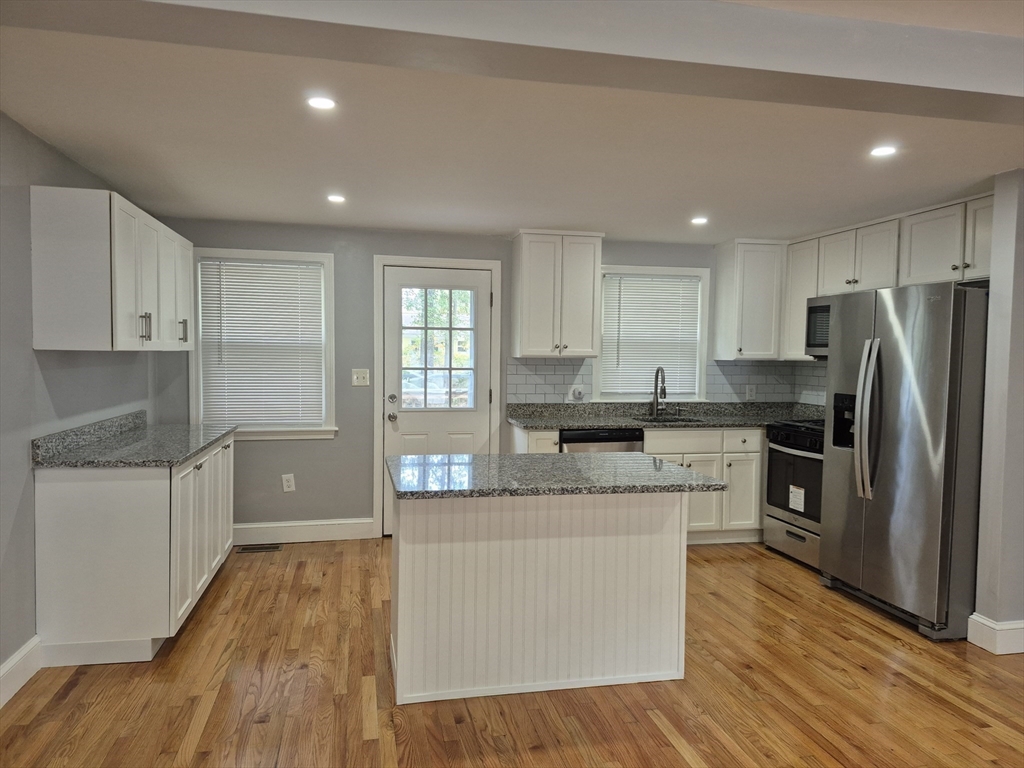 This half duplex is Move-in Ready! This charming townhome features an open concept living room/kitchen with fresh paint and recently refinished hardwood floors. The spacious kitchen boasts newer all stainless steel appliances, center island with room for seating and lots of cabinet and counterspace for storage. Half bath located on first level. Back door opens to a large trex deck and yard, perfect for relaxing. Upstairs offers three generous bedrooms and 1 bath. The finished lower-level family room with tile flooring adds extra living space. Washer/dryer hookup are also on lower level.This unit offer gas heat and central air for year-round comfort. This home is close to shopping, dining, schools, and public transportation. A fantastic opportunity—book your showing today!
