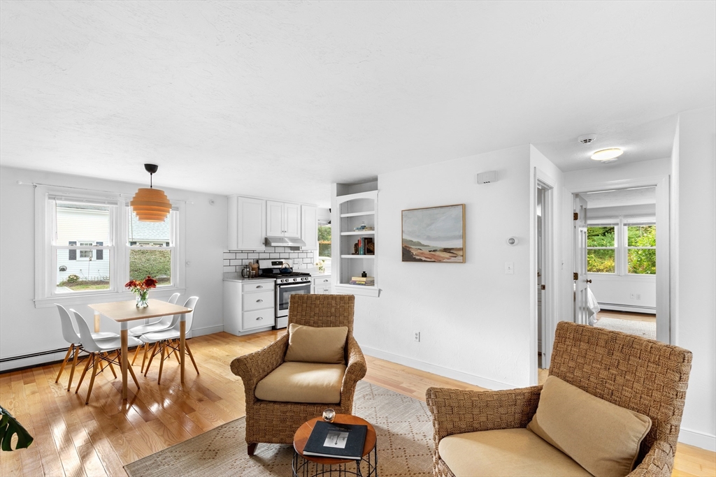Rarely available quaint end-unit condo at the highly sought-after Yankee Village! This sweet one-bedroom home is an absolute gem, offering a warm and inviting atmosphere combined with an unbeatable Plymouth location. The interior is just as impressive: it features, hardwood floors, updated bath, a recently updated kitchen, a gas cooktop, tile back splash and newer cabinets. With fresh paint throughout and year-round comfort provided by a mini-split, this home is truly ready for you. For added ease, two separate entrances offer convenient access to either the parking area or the charming front patio. The location couldn't be better! Situated directly across from the swimming pool, you'll have instant access to resort-style amenities, including the in-ground pool, gazebo, and clubhouse. Low condo fees and an amazing location, just minutes from multiple local beaches, golf, highway access, and Downtown Plymouth, make life here easy and convenient.