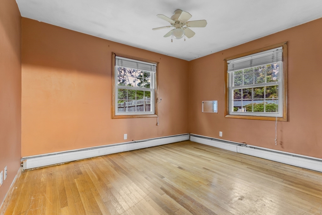 Charming ranch-style home featuring 4 bedrooms, 1 bath, and 1,440 sq. ft. of living space on a spacious 0.42-acre fenced lot. Includes a cozy fireplace, eat-in kitchen, hardwood floors, and two storage sheds. Conveniently located in a quiet Brockton neighborhood near schools, parks, and shopping.