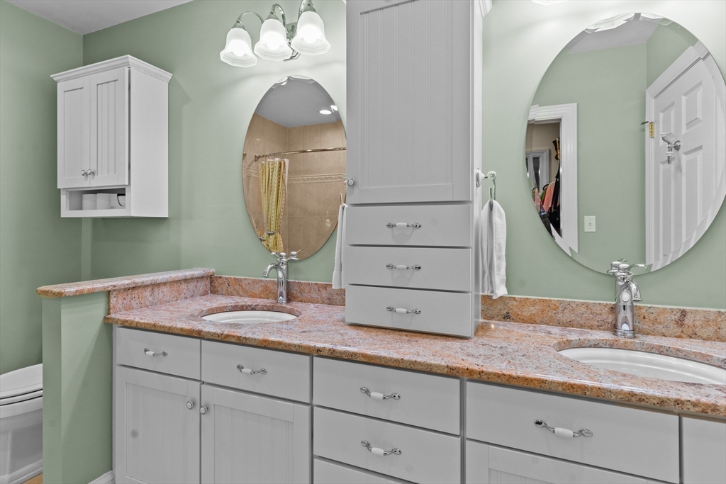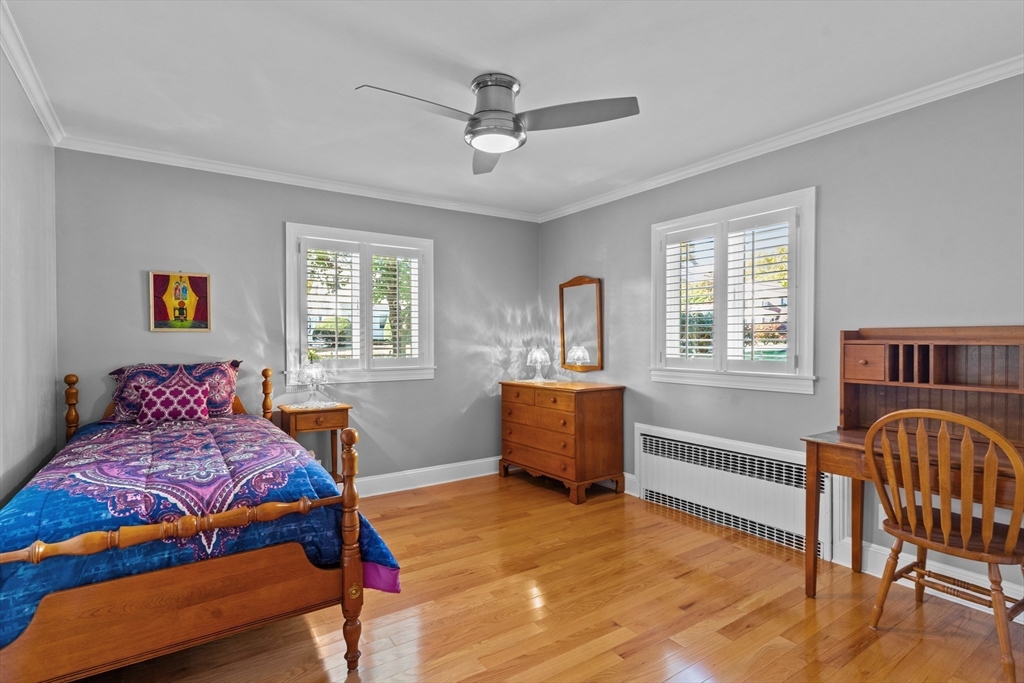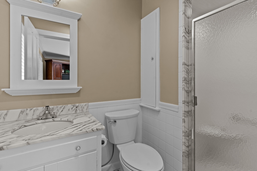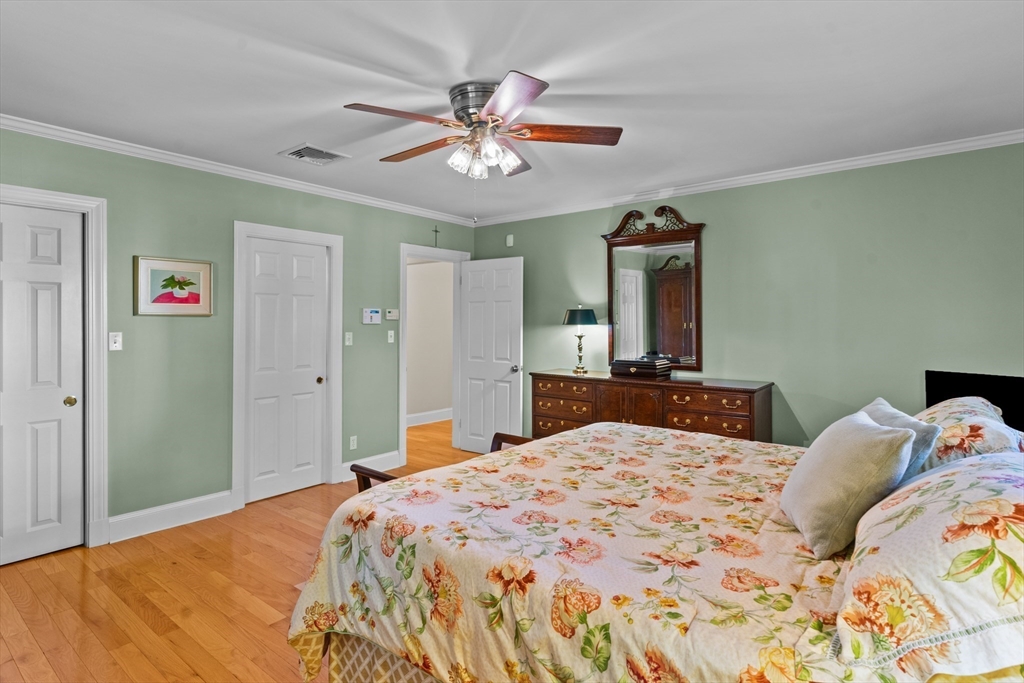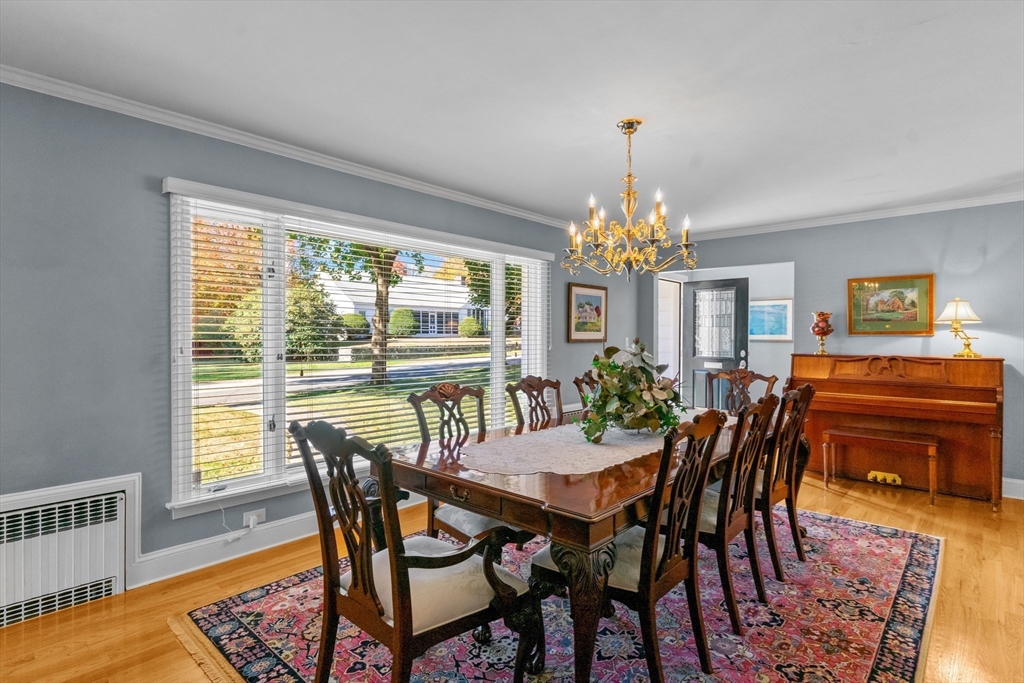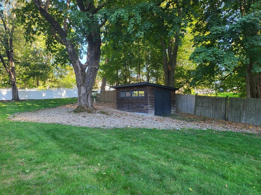 North Smithfield. One level Ranch near MA line.Quality craftsmanship is evident throughout and noted in the compound moldings and woodwork. Everything has been updated by the current owners. The roof, windows, flooring, heating system, water heater, oil tank have all been updated/replaced and bathrooms were remodeled. The home is spacious and elegant with 8' high ceilings, 3 fireplaces, 3-4 bedrooms, and 3 1/2 bathrooms. For growing families there is space for everyone on main level and in partially finished basement. The basement has a 1/2 bath, living area, and wet bar, laundry room, and access to 2-car heated garage and 1000 SF of unfinished area. The main level features a beautiful room with fireplace, built-in shelves, private balcony, and full bath for use as a guest suite, in-law living area or library. The kitchen is spacious with lots of storage & work area. Off the kitchen is rear deck and steps to flat yard for pool and more. Connected to water. Gas available in street.