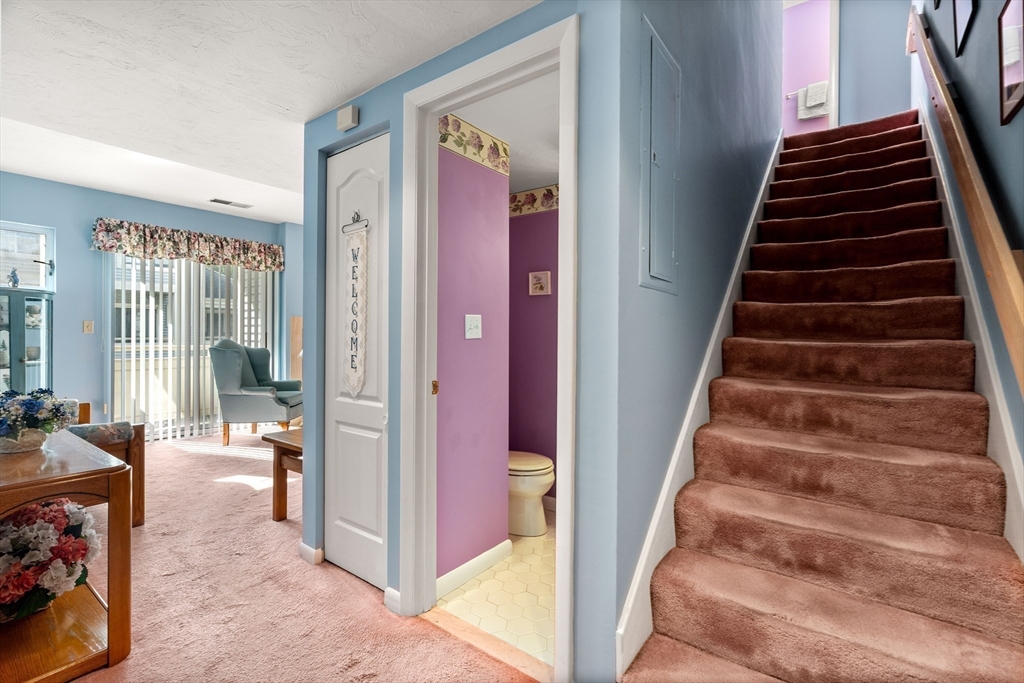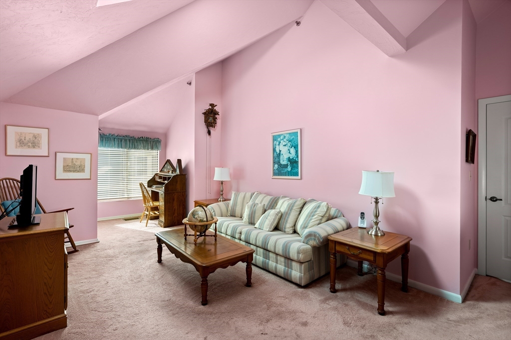 Welcome to "The Falls" Townhouse style, 2 level, top floor, corner unit in highly desirable and convenient area. An abundance of natural light, 2 sliders to balcony, updated kitchen with granite, dining room area, wood burning fireplace, W/D in unit and a 1/2 bath completes the first floor. 2nd floor offers 2 very spacious bedrooms both with high ceilings, large windows, skylights and large closets with extra storage for seasonal items, etc.. .Each bedroom offers extra space for sitting or office area, full bath and beautiful natural light throughout. Parking spot and plenty of visitor parking. Professionally managed, pet-friendly community with superintendent on-site. Very convenient location close to Faxon Park, shops, restaurants. Easy access to highways and public transportation. Make this your own!