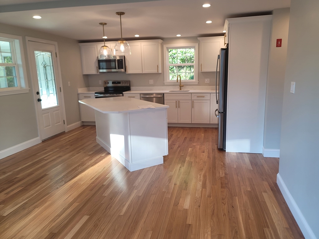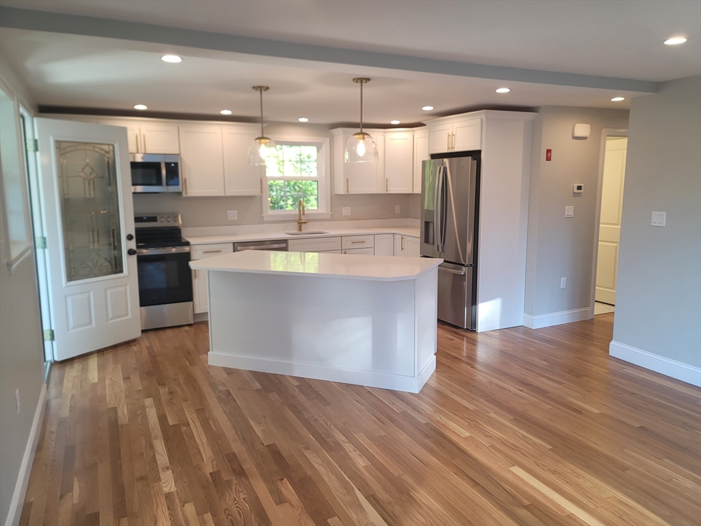 Beautifully situated on serene cul-de-sac in a sought-after area near shops & highways, this impeccable, completely renovated home on an acre lot offers abundant space both inside & out. Even the 2 car garage is large & boasts a loft -- great added space for potential studio, gym, etc. New features also include: vinyl siding, electric & more. Inside, a breezy & open 1st level floor plan is highlighted by gleaming hardwood floors, a lovely neutral décor & recessed lighting. You won’t miss a beat entertaining & serving meals in the stylish kitchen, outfitted with sleek quartz counters & island that opens to dining room with bow window. The living room, also with a bow window, adds another bright gathering space. Plus, there’s great flexibility with the bedroom & full bath also on this level. Upstairs you will find 4 comfortable bedrooms & full bath. The acre lot boasts generous space to garden, relax & gather: an inviting setting that balances privacy & proximity to everything you need.