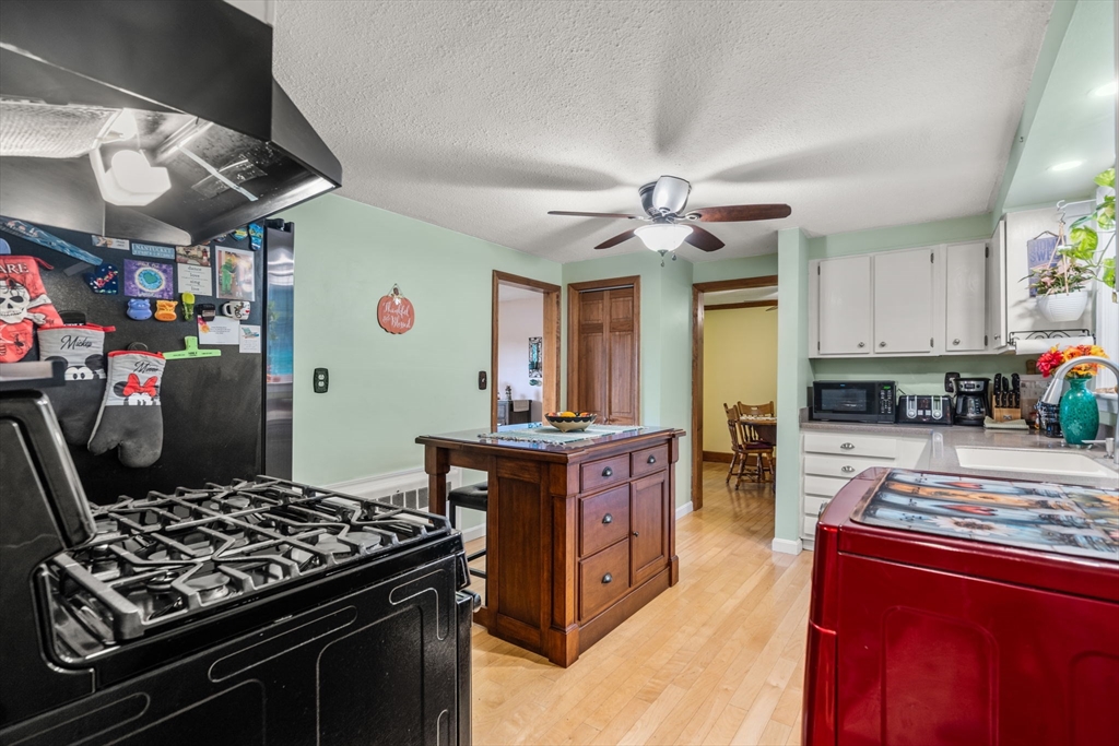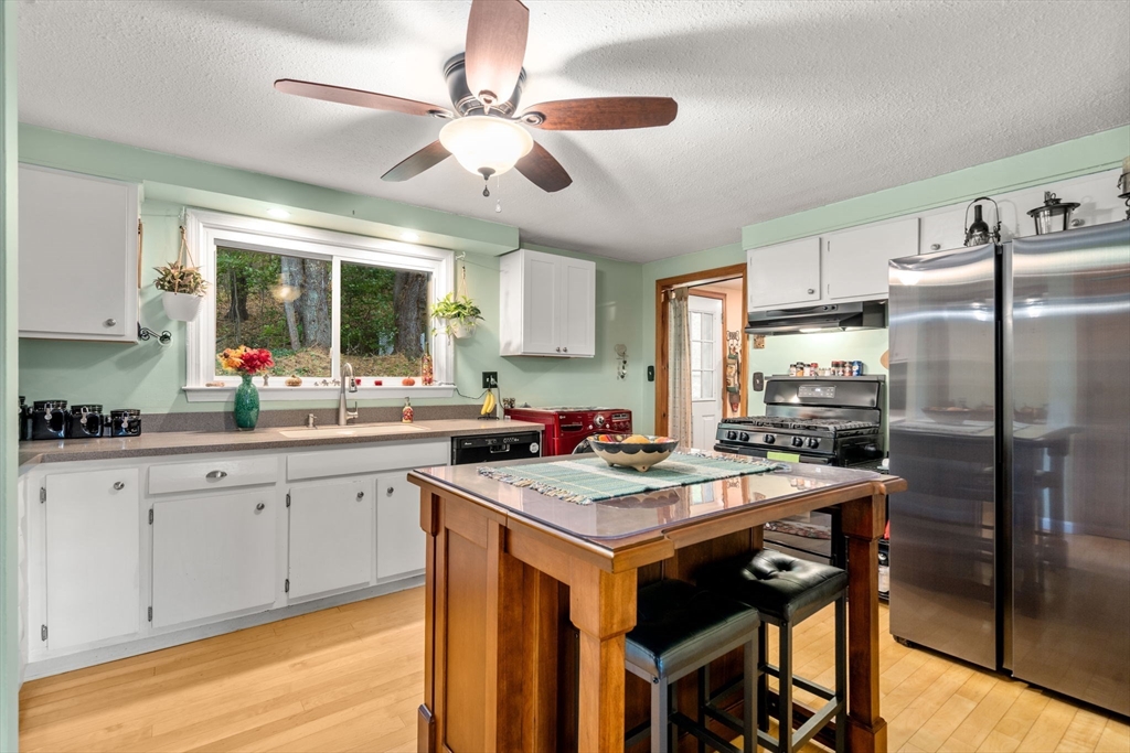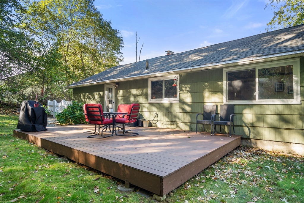 Turn-key living awaits in this updated 3-bedroom ranch on a spacious 14,200 sq. ft. lot. Recent upgrades—including natural gas conversion, a high-efficiency combi-boiler, added insulation, solid wood doors, newer high-end flooring that replaced wall-to-wall carpeting, a sleek Trex deck, and a new garage door—add real substance and peace of mind. The updated bath, hardwood & LVP floors, and a well-appointed kitchen with ample cabinetry make the home feel fresh and move-in ready. A wood-burning fireplace warms the living room, while the garage and bonus mudroom/laundry add everyday convenience. Outside, enjoy the fenced yard and custom 12x24 deck—perfect for entertaining or simply savoring the quiet privacy the current owner loves. Ideal for first-time buyers or anyone seeking a simpler life in a thoughtfully upgraded, easy-to-love home.