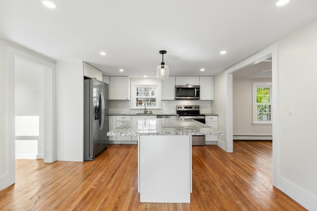 Beautifully updated 4 bedroom single family with large level backyard AND updated 2-room guesthouse. New kitchen with large island, new windows, new bathrooms, stunning hard wood floors throughout. 2nd fl laundry with new washer/dryer. Cute mudroom with bench and storage nook. Lots of closet space. All new electric panel, wiring, lights... Freshly painted. Enjoy the view of the large yard and landscaped beds from the large new deck. Plenty of parking. Work from your home office. Large basement with workshop and tons of room for storage.