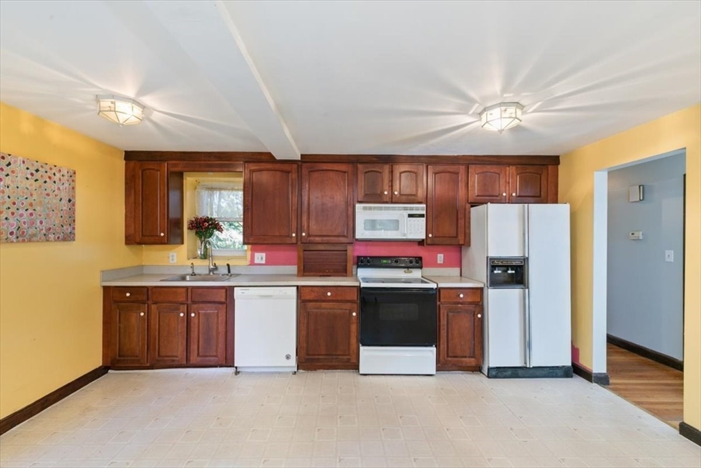 New Listing! Calling all investors, Flippers, or someone who wants to build sweat equity. This ranch is placed on a great level lot in a very desirable neighborhood. Enter into your living room with wood fireplace, over sized kitchen ready to be designed into a masterpiece with a slider leading to a large deck. A full bathroom and three bedrooms complete the first floor. The basement is waiting to be completely renovated. This will almost double the size of your living space with another living room and or family room with a fireplace on each side of the steps, another full bath and walk out to your beautiful .57 acre level lot. First showing will be at the open house Sunday from 11:30-1:00.
