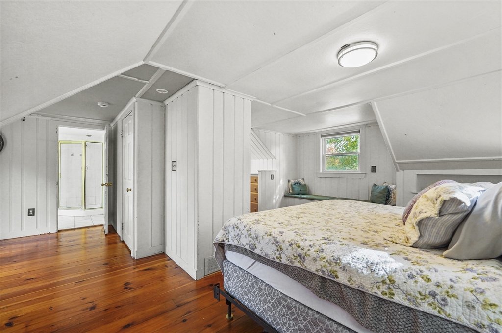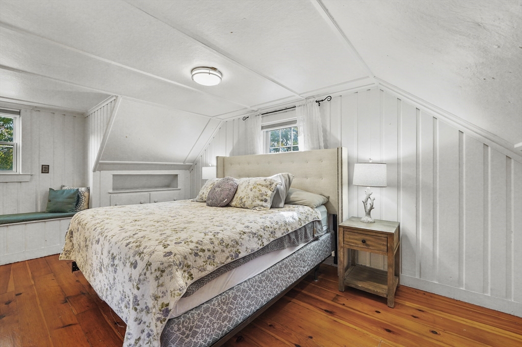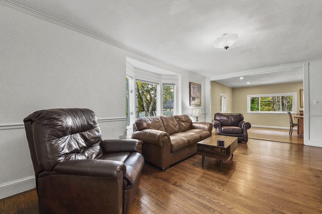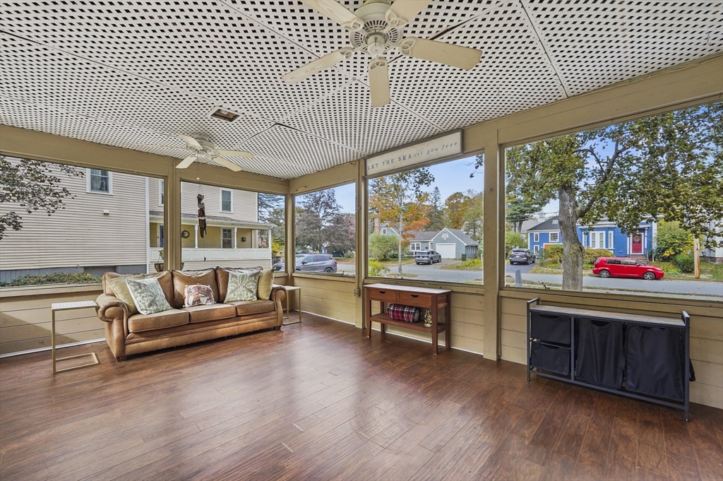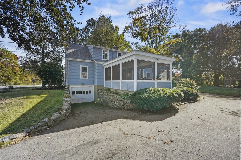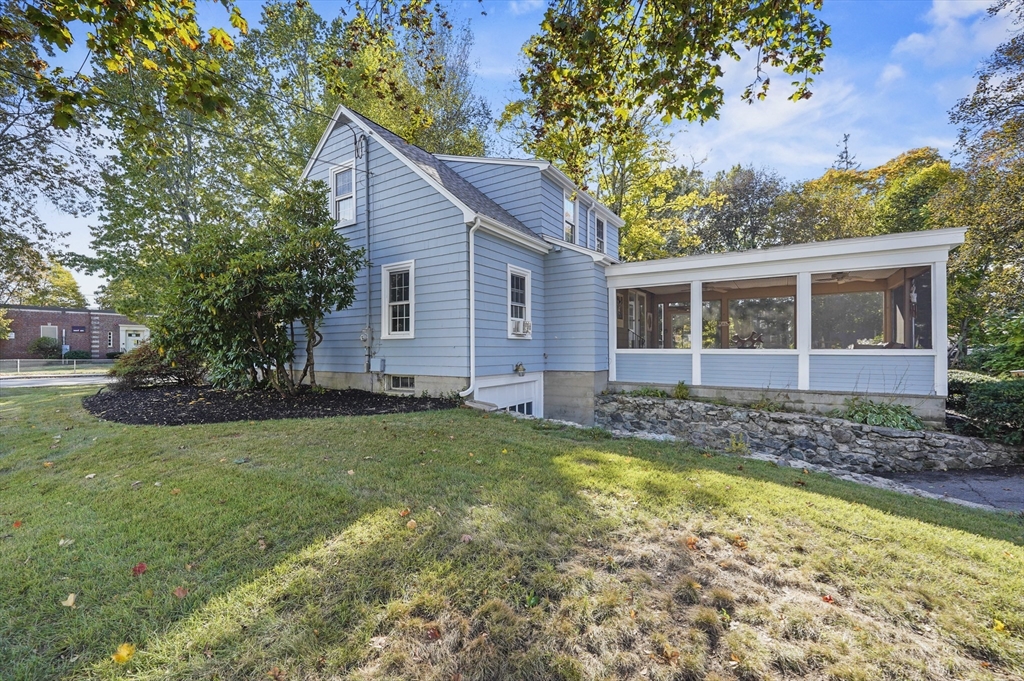 Charming 3-bedroom, 2-bath Cape in desirable Georgetown! Step inside to find beautiful hardwood floors flowing throughout the main level. The bright living room offers a cozy fireplace and large bay window, filling the space with natural light. The dining area opens to a stylish kitchen with granite countertops, gas cooking, and ample cabinetry, perfect for daily living and entertaining. Enjoy the serene three-season porch, ideal for relaxing. Two bedrooms, a full bath, and first floor laundry complete the main level. Upstairs, the primary suite features a full bath, walk-in closet, built-ins, and a bonus room. Major updates include a new roof (2024), water heater (2023), oil tank (2023), and recent electric panel and septic system. A one-car garage adds convenience, all in a prime Georgetown location near local amenities and commuter routes, blending comfort, function, and timeless New England charm.