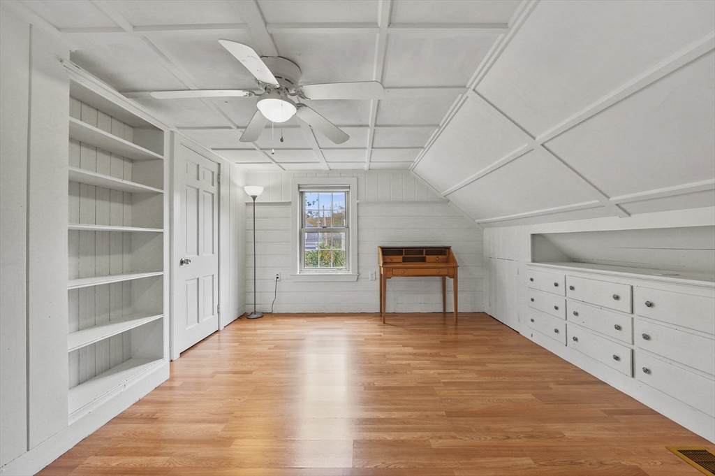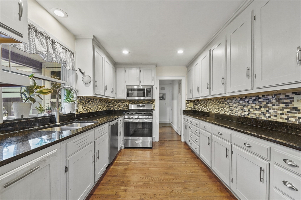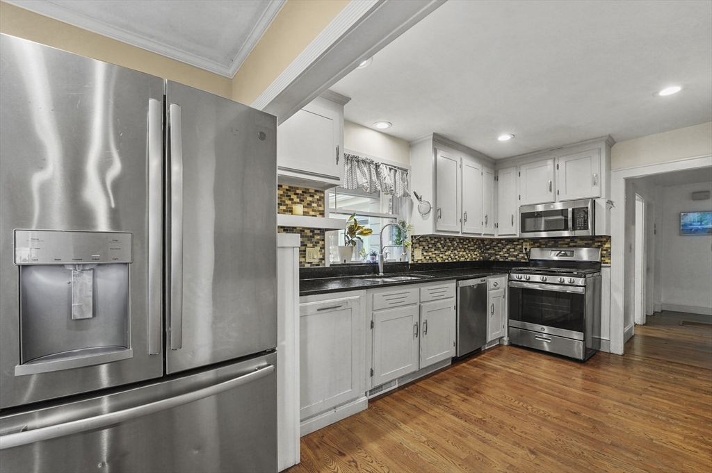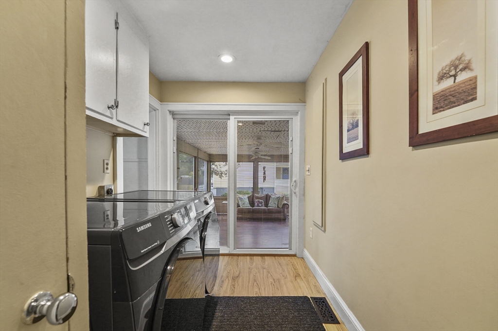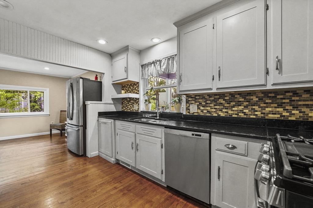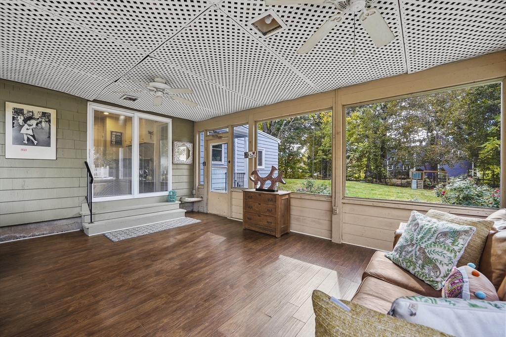 Charming 3-bedroom, 2-bath Cape in desirable Georgetown! Step inside to find beautiful hardwood floors flowing throughout the main level. The bright living room offers a cozy fireplace and large bay window, filling the space with natural light. The dining area opens to a stylish kitchen with granite countertops, gas cooking, and ample cabinetry, perfect for daily living and entertaining. Enjoy the serene three-season porch, ideal for relaxing. Two bedrooms, a full bath, and first floor laundry complete the main level. Upstairs, the primary suite features a full bath, walk-in closet, built-ins, and a bonus room. Major updates include a new roof (2024), water heater (2023), oil tank (2023), and recent electric panel and septic system. A one-car garage adds convenience, all in a prime Georgetown location near local amenities and commuter routes, blending comfort, function, and timeless New England charm.