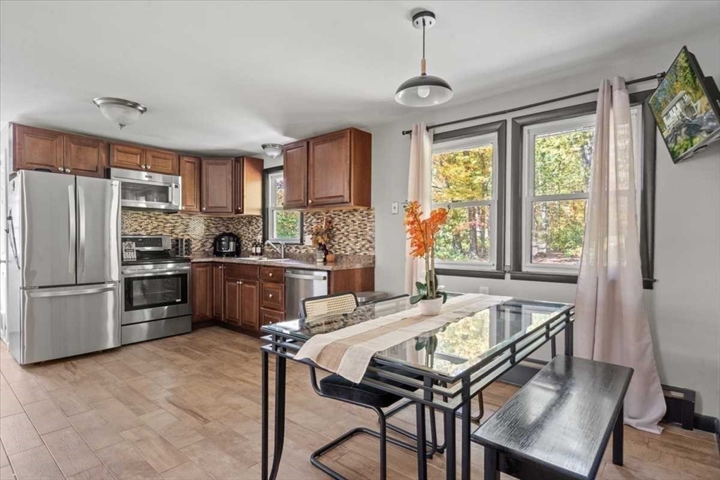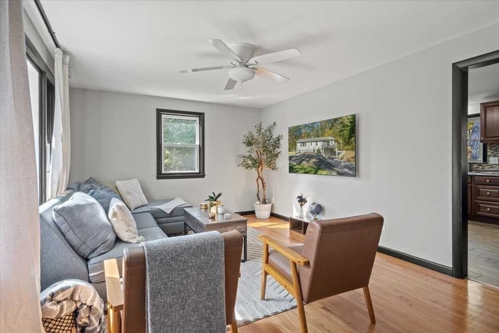 Ready to make your move before the holidays? This beautifully renovated 3-bedroom, 1-bathroom ranch-style home is in a prime commuter location, making it perfect for easy access to everything you need. Whether you're downsizing or looking for a cozy family home, this meticulously maintained property offers modern updates and timeless charm. Step inside to find gleaming hardwood floors throughout, complemented by stylish hardwood-style tile in the updated kitchen. The kitchen boasts stainless steel appliances, ideal for cooking and entertaining. The spacious living areas flow seamlessly, offering comfort and warmth. Enjoy the fresh air and peaceful surroundings with a wood balcony off the main bedroom—perfect for morning coffee or evening relaxation. The level backyard is ready for all your outdoor activities, from gardening to summer BBQs.The seller is relocating and motivated to make a deal—don't miss your chance to make an offer on this charming home before it's gone!