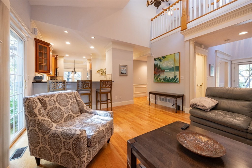 Rare offering in Hopkinton’s Desirable Deerfield Estates Over 55 Community (One person on the deed must over 55 yrs or disabled) Stand-alone 2 bedroom, 4 bathroom, 2 car garage model home with all the extras. Open floor plan - living room with vaulted ceiling & gas fireplace, kitchen with bright eat-in dining area, large formal dining room with wet bar, primary main floor bedroom w/en suite bath & dbl. closets, laundry room with cabinets and sink. Custom blinds, wainscoting, beadboard, high end finishes and hardwoods throughout. 2nd floor guest bedroom/bathroom, home office & family room, BONUS Finished lower level w/ bathroom and flex rooms (home gym, game room with wet bar, theater/media room, workshop/utility room). Blue stone patio surrounded by trees, gardens and rock walls offers great backyard privacy - next to putting green/park area! Beautiful home to entertain family and friends in well maintained community.Convenient to downtown, shops, restaurants, Rts. 495 & 90
