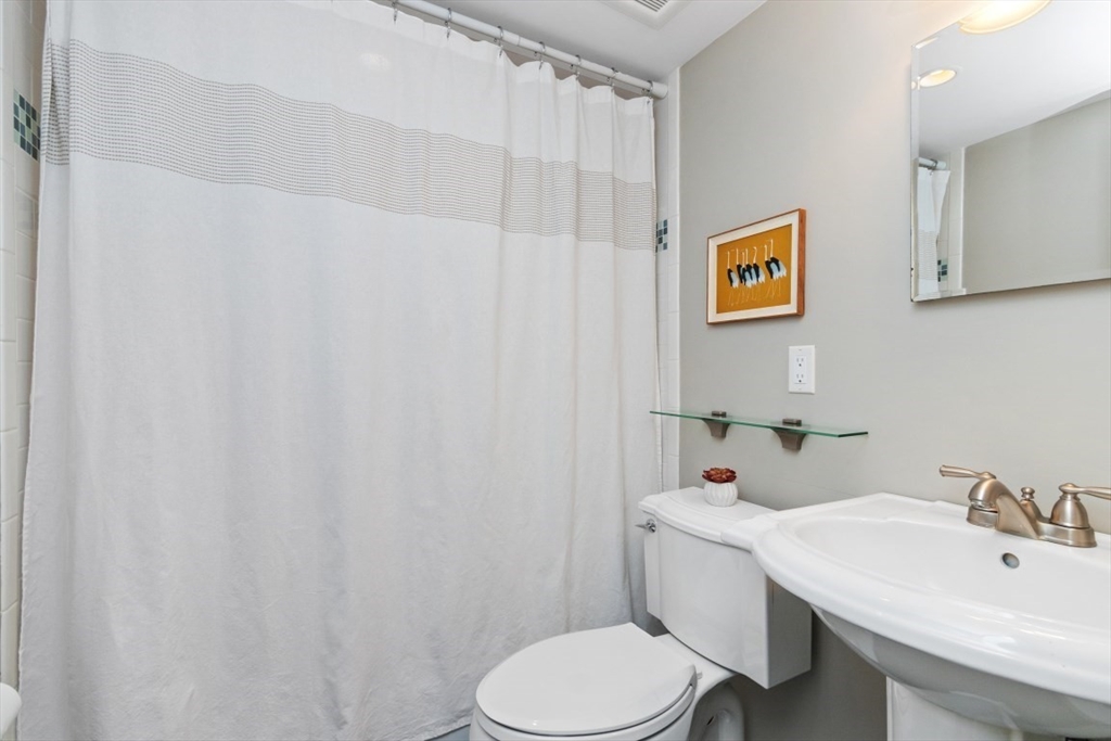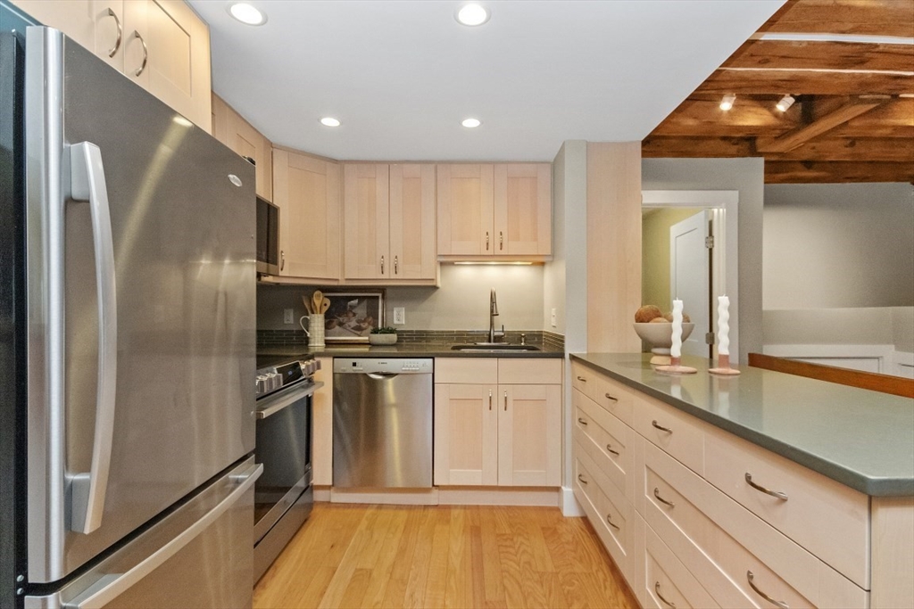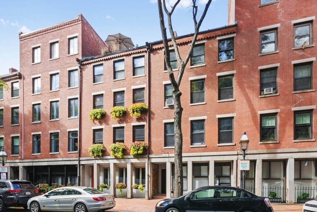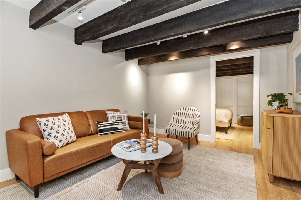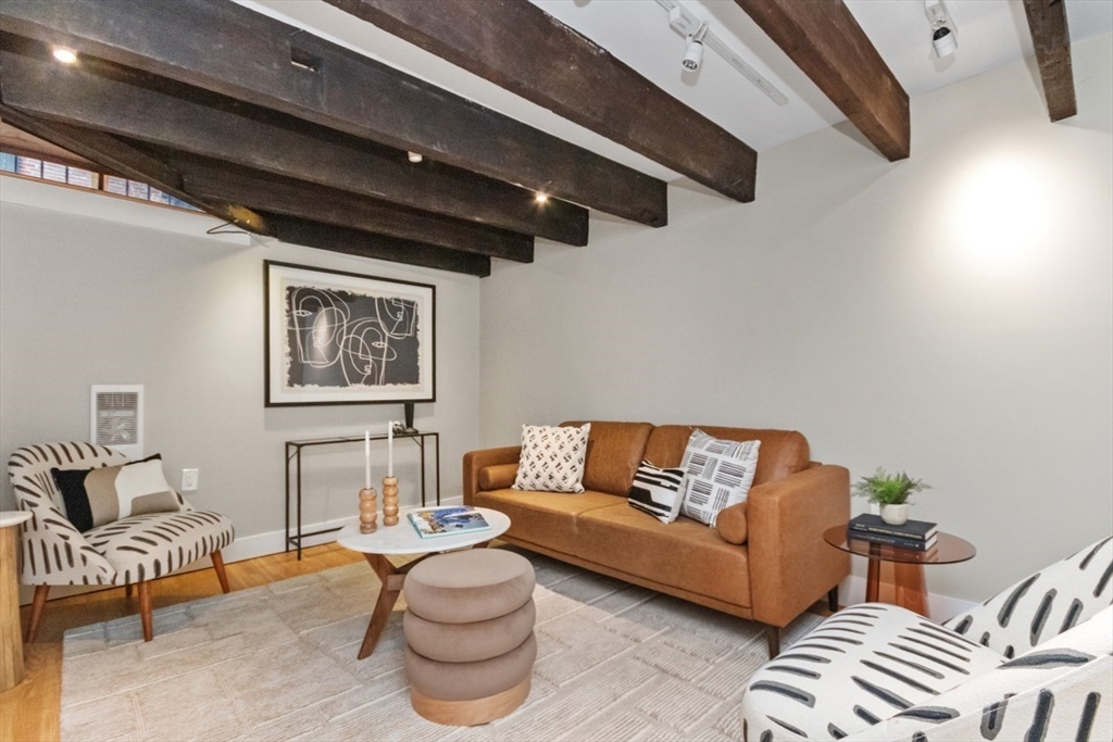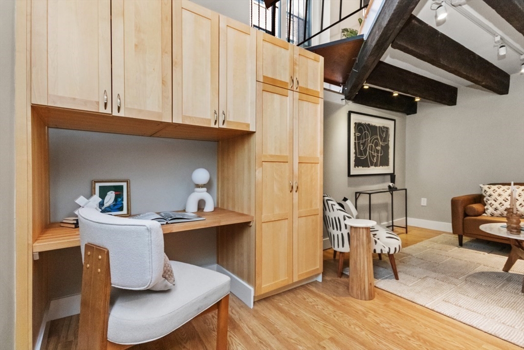 Beautiful Boston Waterfront duplex condo featuring exposed brick and beams. This loft like home is one of the largest 1 bedrooms on the market in the North End at 908 square feet and is ideal with main level offering open/updated kitchen and dining areas with hardwood floors and brick accent walls. Kitchen features newer appliances, induction stove and Silestone countertops. Direct access through sliders to beautiful North End Alley. Full bath completes the top floor. Downstairs you'll find another living space with a built-in work from home space and large bedroom with loads of closets/built ins for storage. Boutique building, self-managed, owner occupied, and pet friendly and convenient in-building laundry. On The Waterfront in The North End minutes from Faneuil Hall and surrounded by the Seaport District, Greenway, North/South Station, downtown Boston, and all major transportation points. Taxes do not reflect residential exemption ($3984.21)