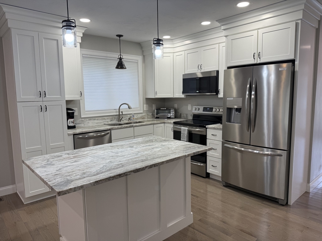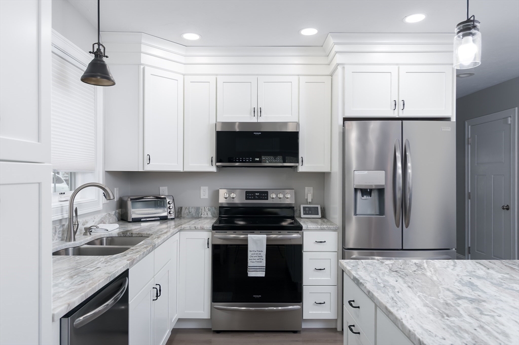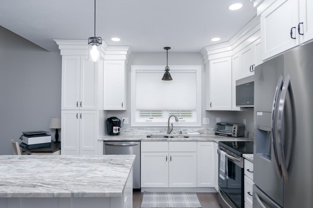 Welcome to Spruce Hill where you find this just like new one level living condo in a lovely 55+ community . Offering dine in kitchen with center island, granite counters, stainless steel appliances , white cabinetry accented with crown molding as well soft close features. Open to living room with vaulted ceilings, Propane FP and slider to composite covered porch/deck with views of wildflowers and mature trees. Spacious primary suite with ample closet space and private bath with dbl vanity sink , granite counters and shower . 2nd bedroom can also be used as an office or den all with tasteful plank flooring . 1st floor laundry option and one car garage complete the main level . 2nd laundry hook up in the LL and endless options for finishing or plenty of storage . All located closest to town center. Local restaurants , and parks