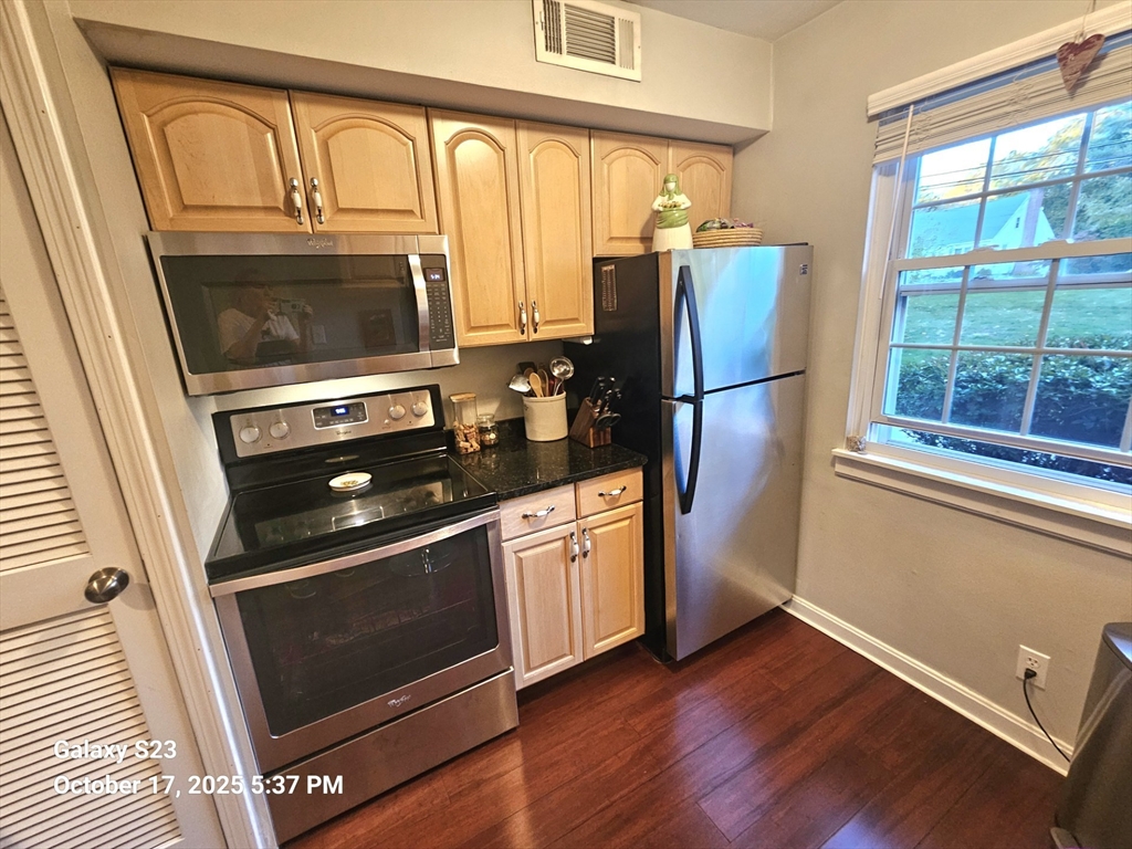 OPEN HOUSES: Friday, October 24th from 4:00-6:00, Saturday, Oct. 25th from 12:00-1:30 and Sunday Oct 26 from 11:00-1:00! Lovely "deluxe" 2 bedroom unit at Windsor Green offering 981 square feet of living space! You'll find wood laminate flooring throughout the 1st floor where the kitchen offers granite counters and SS appliances. Sliders from the living room take you to your own private patio perfect for your garden and summer evening dinners. There is also a newer shed for extra storage needs. Walk up the stairway with brand new carpeting to the sun-kissed primary bedroom where you have plenty of space and beautiful sunsets! This floor also offers a guest bedroom with a generous closet, a full bath and a washer and dryer. Don't miss this opportunity to move into this delightful community with beautiful plantings, swimming pool, basketball court and a small playground for children. Just reduced HOA Fee! Seller to pay off assessments at closing!